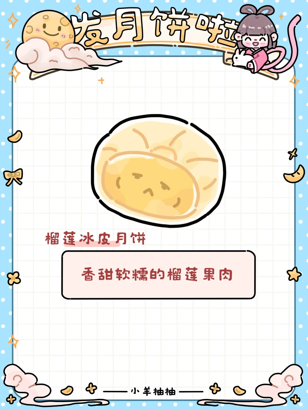 软软糯糯的榴莲果肉➕冰冰凉凉的外皮👍水果月饼中的最爱😍