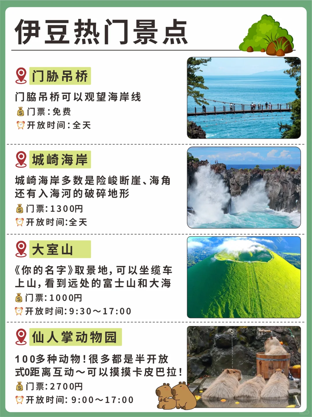 💡大室山周边,景点较为集中,推荐游玩一天,5-9月抹茶山必打卡,仙人掌🌵公园-萌宠乐园!亲子互动性强,绝美海岸线城崎海岸,沿着海🌊岸线徒步,超治愈!而且每个角度都是绝佳拍照打卡地!
