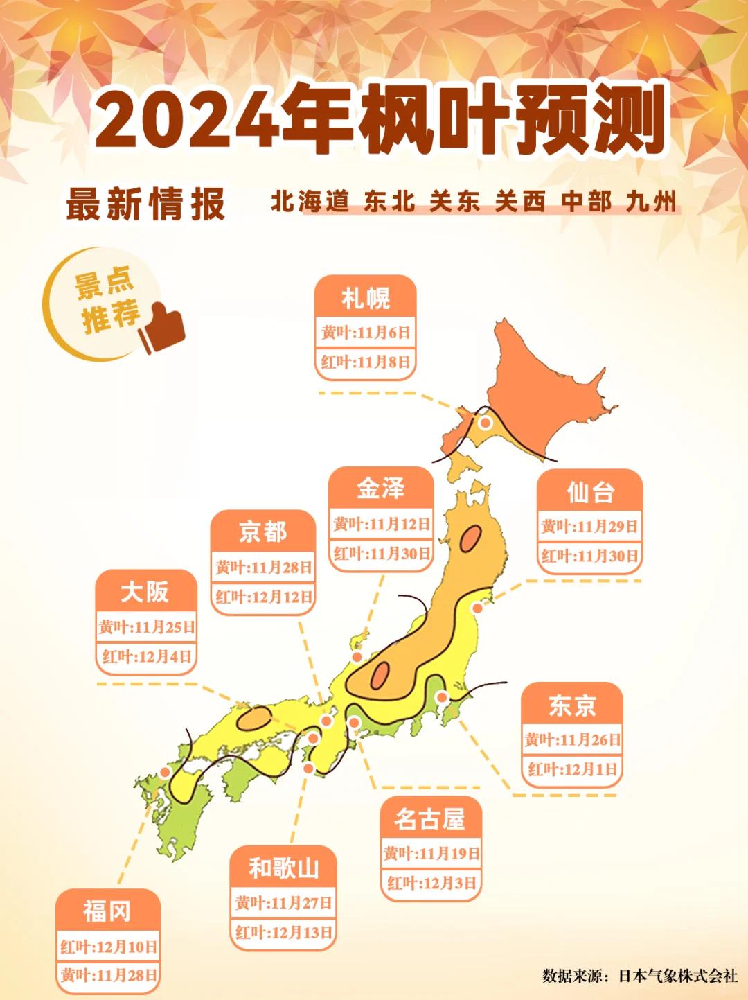 知道宝子们等着红叶🍁狩的具体信息订机票和酒店,这不2024赏枫官方预测情报终于来啦❗