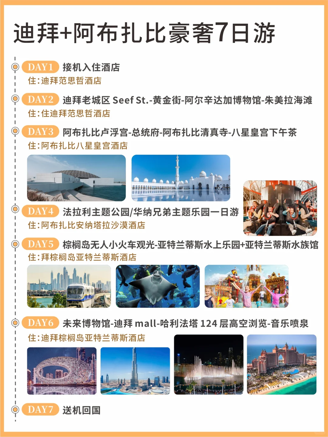 中东旅游阿联酋🇦🇪是大家不可错过的目的地之一,“头顶一块布,全球数我富”的土豪😀代表迪拜,包括富得到流油的阿布扎比,自然是全球奢牌酒店🏨的聚集地,,迪拜的乐园更是让各位小伙伴流连忘返,小编给大家推荐👍🏻7天豪奢酒店+畅玩乐园的行程,不管是亲子还是蜜月都会给小伙伴们留下难忘的人生回忆❗