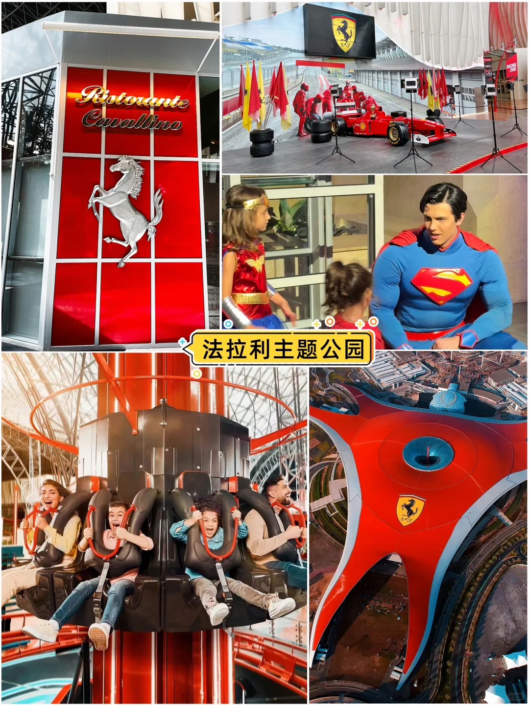 🫰🏻法拉利主题公园-在场馆内,除了法拉利各个时期的跑车、赛车,就连F1车房、驾驶模拟器都有,除了拥有蕞快的过山车🎢体验激情,还可乘坐带娃坐1958年的小型法拉利穿梭迷你意大利,大人小孩都适合