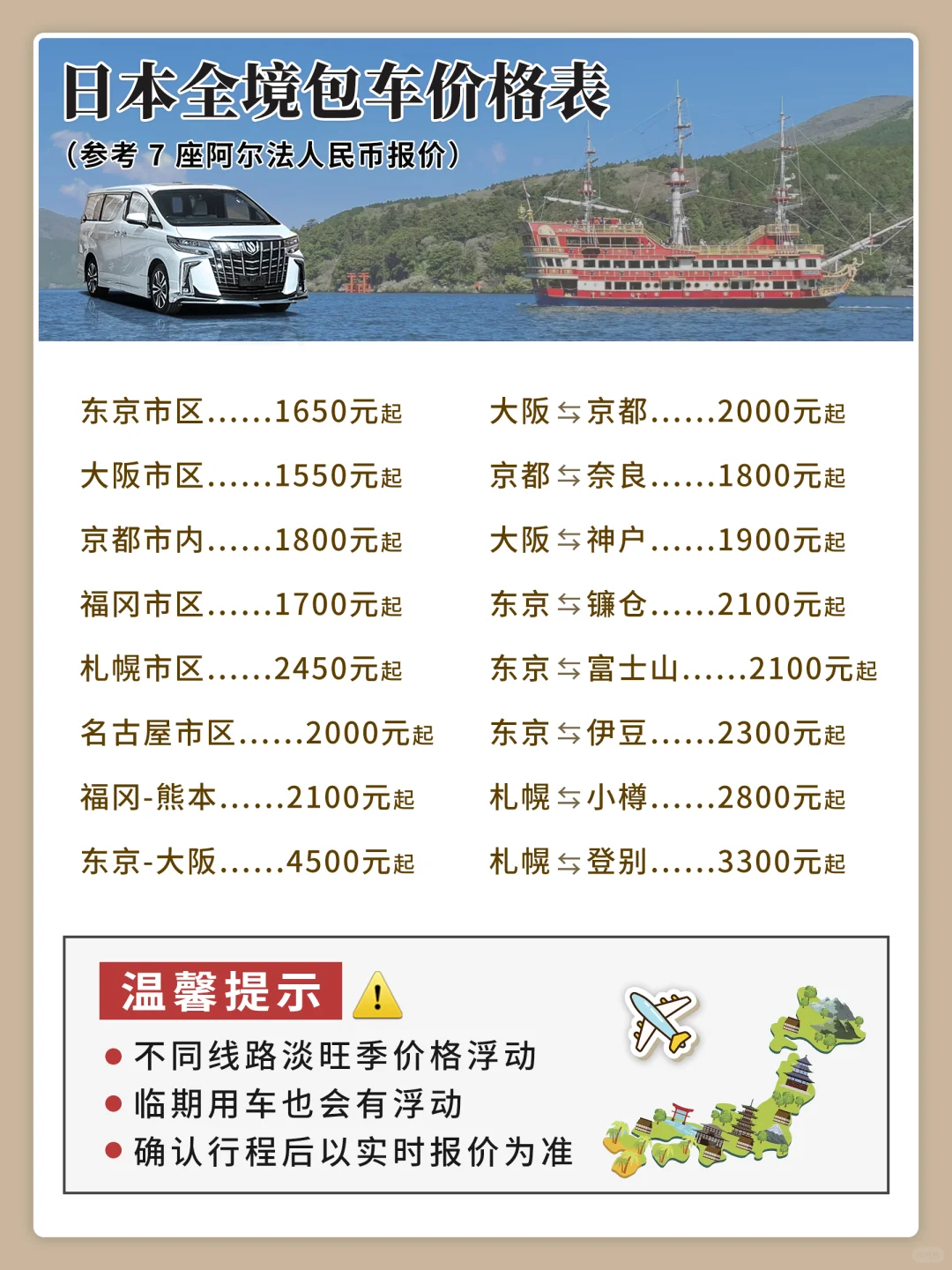 [关东关西深度线路包车定制]、[本州+北海道线路包车定制]、[红叶季线路包车定制]