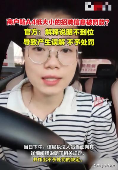 面对城管执法人员的严厉指控,女店主显得有些手足无措。她坦言,自己对相关规定并不知情,张贴招聘启事的初衷不过是为了寻找合适的店员,助力小店的发展,怎料想竟会招致罚款的严厉处罚。