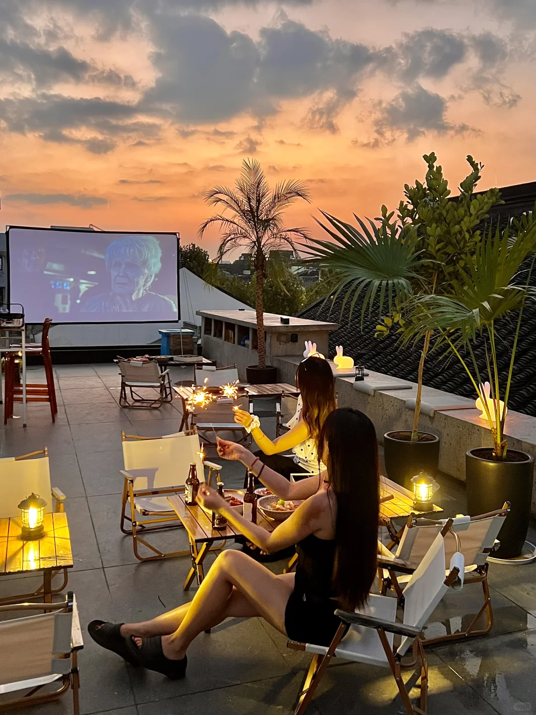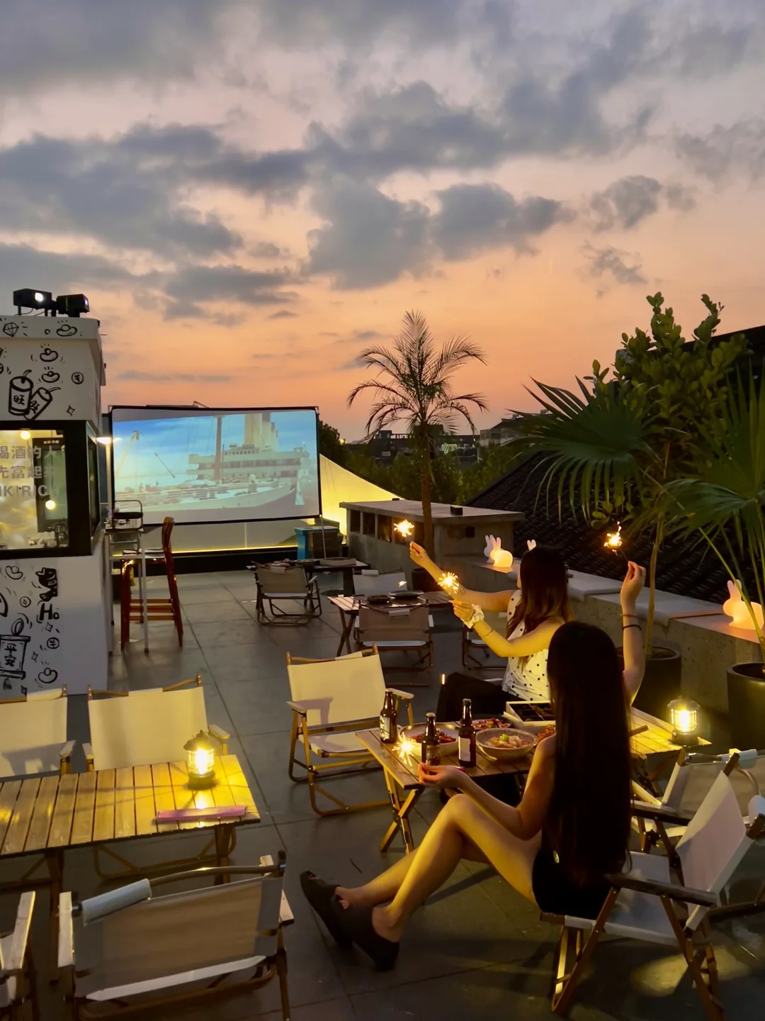 救命…夏日露天电影bar🍹的chill感谁懂…美到窒息 Pyq刷到的…真的一眼心动!! 和朋友相约一起去 氛围感好绝啊 夜幕的影院 朋友间的小酌 还有仙女棒飞舞~ 这个时刻简直太chill了🍾拍照咔咔出片 真的愿意一直呆到天亮……