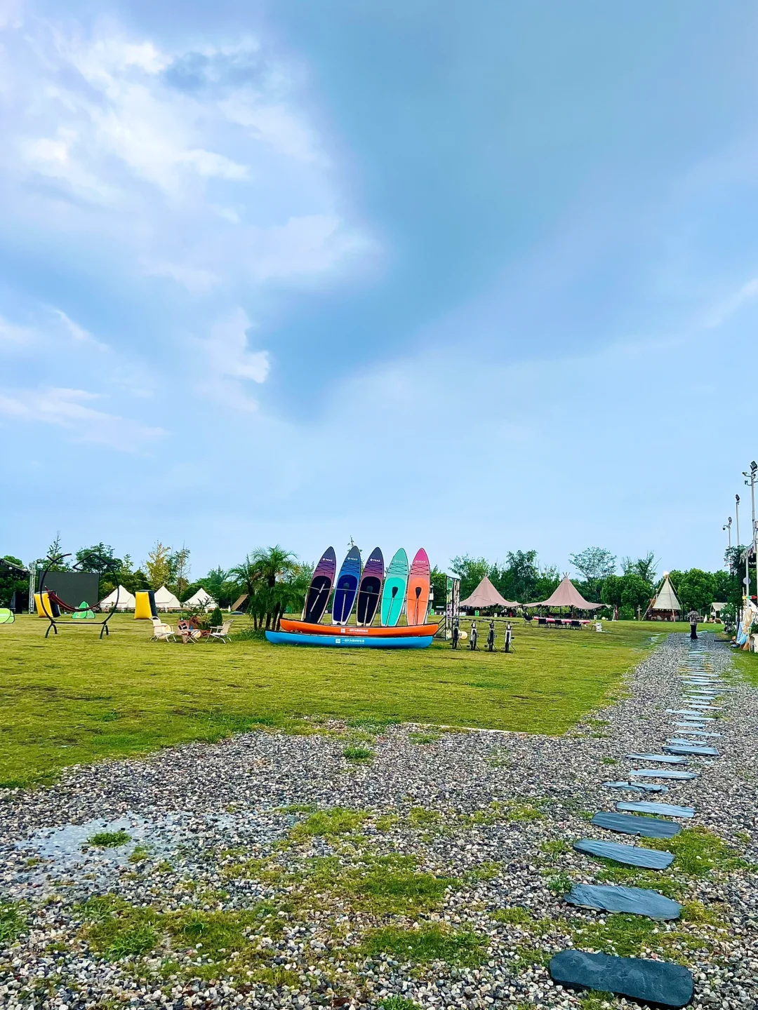 这里真的超级好玩 体验感真的拉满!! 高尔夫🏌🏻♂️浆板🛹飞盘🥏足球⚽射箭🏹骑行🚴🏻♂️等等好多运动项目!! 傍晚还有篝火派对🪵音乐现场🎶露营烧烤🍢 等满满的娱乐活动