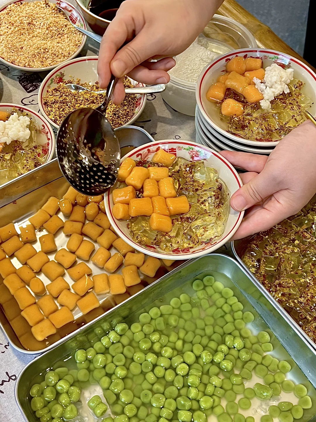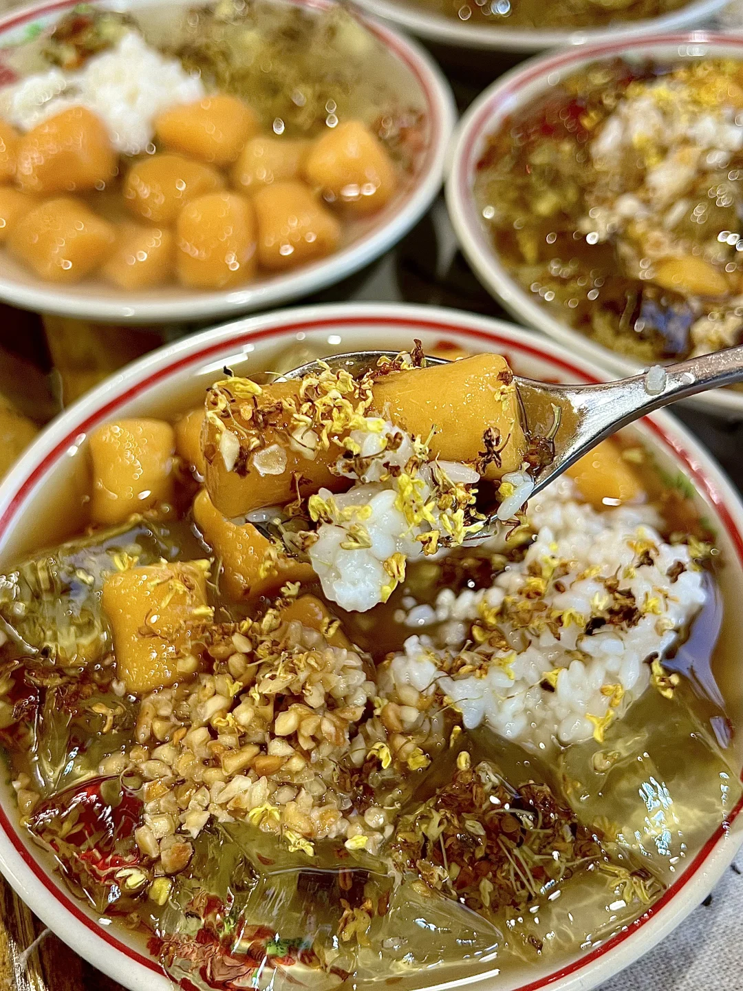 桂花冻冰凉Q弹 酒酿清甜顺滑 芋圆糯糯唧唧 口感层次真的jujuju丰富 大吃一口…满嘴留香 还有苏式经典的三虾面 蟹黄面 真的好吃到破防😭😭嗦起来非常鲜美 吃完还可以去附近的平江路 观前街溜达溜达消消食!!太惬意了~
