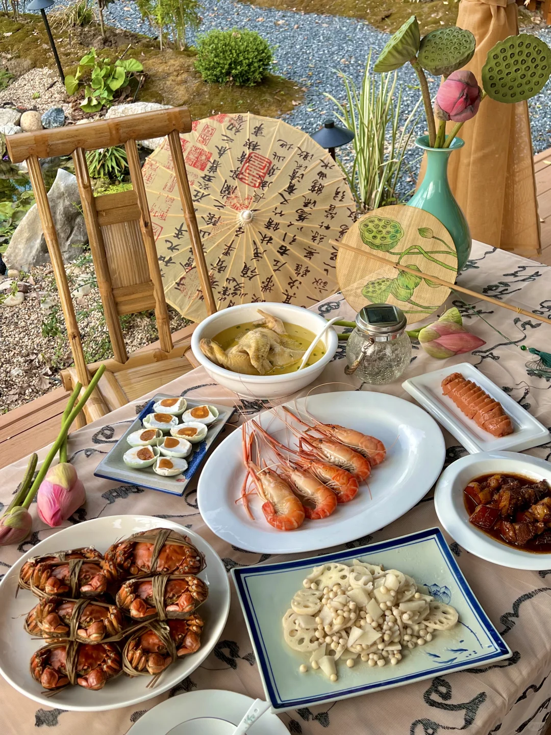 第一次来环境这么美的农家乐,古香古色的,环境超级出片,很适合来短途度假游玩~ 老板是岛上地地道道的蟹农,农家乐开了15年了,服务也很热情 螃蟹🦀品质真的好,满满的蟹黄,个头又大,蘸上醋汁,太鲜了,老板农家菜做的也不错,鸡汤、红烧肉拌菜饭……做的太美味了! 趁着蟹季刚开始,人比较少,赶紧来来品尝打卡!!