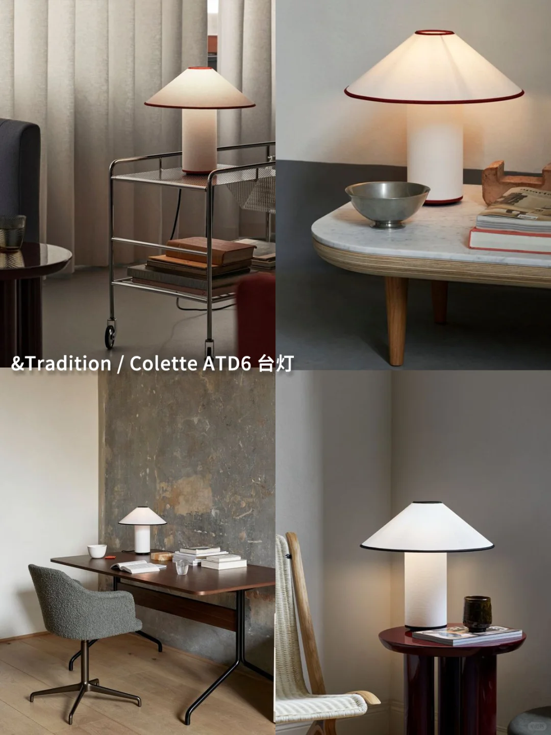 ⚪&Tradition / Colette ATD6 台灯:复古+优雅的外观,灯光光感温润,作为角落的补充光或桌灯,也不会因为风格太突兀而显得违和