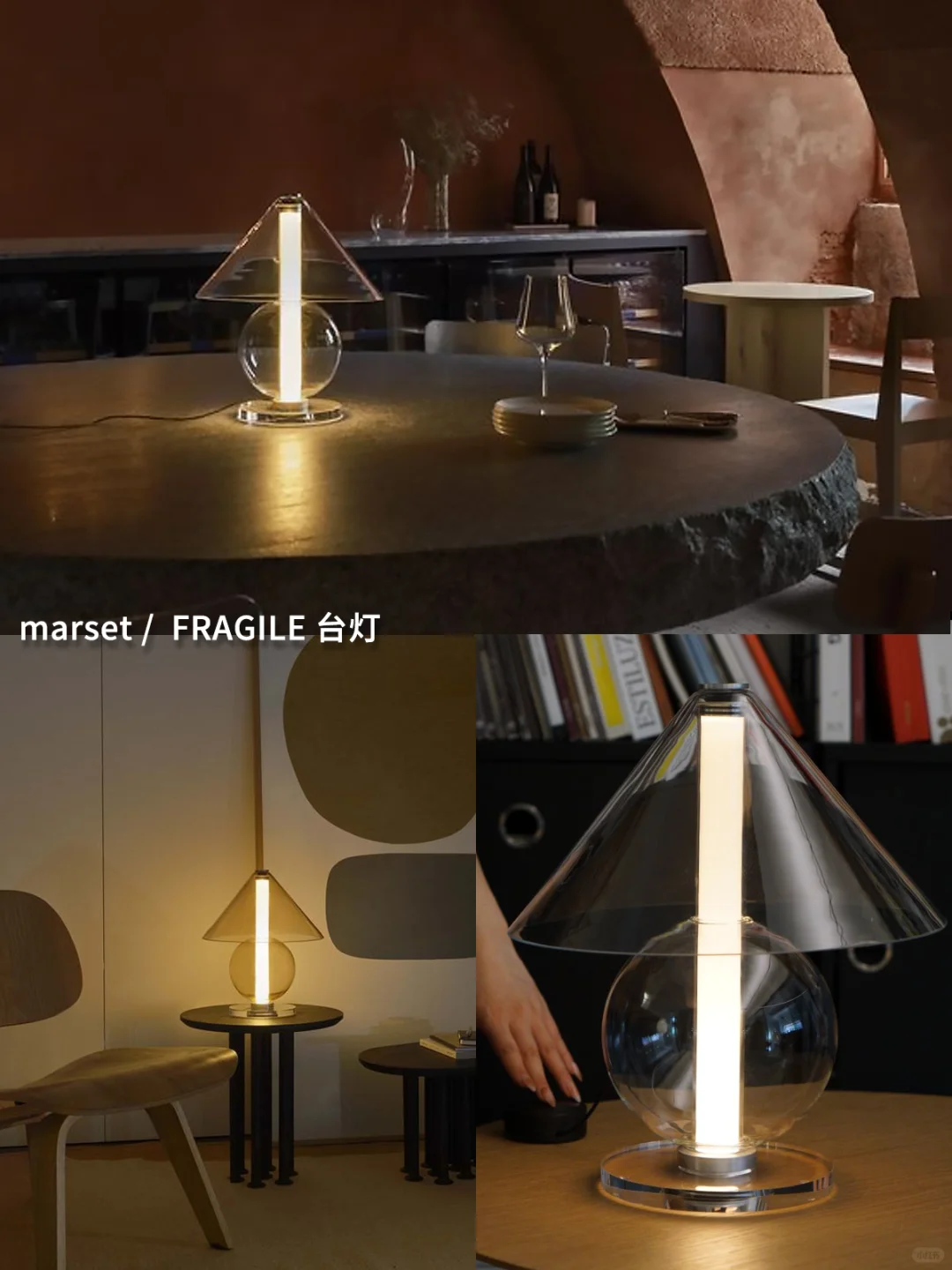 ⚪marset/FRAGILE 台灯:脱开了传统设计,玻璃透感的灯具轮廓,美的有种空灵感