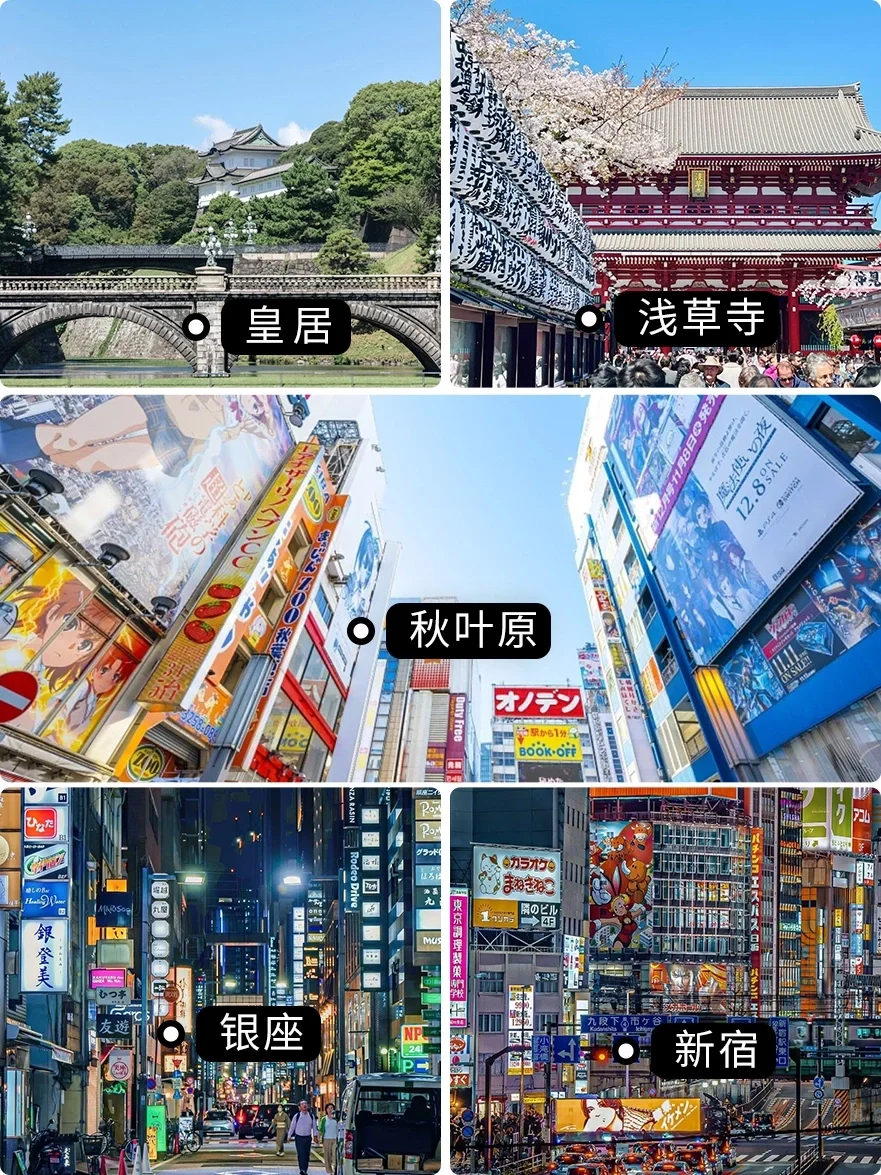 ⭐D7:浅草寺-皇居-秋叶原(动画、漫画、游戏爱好者心中占据着不可替代的地位)-银座(购物爱好者和美食爱好者的天堂)-新宿