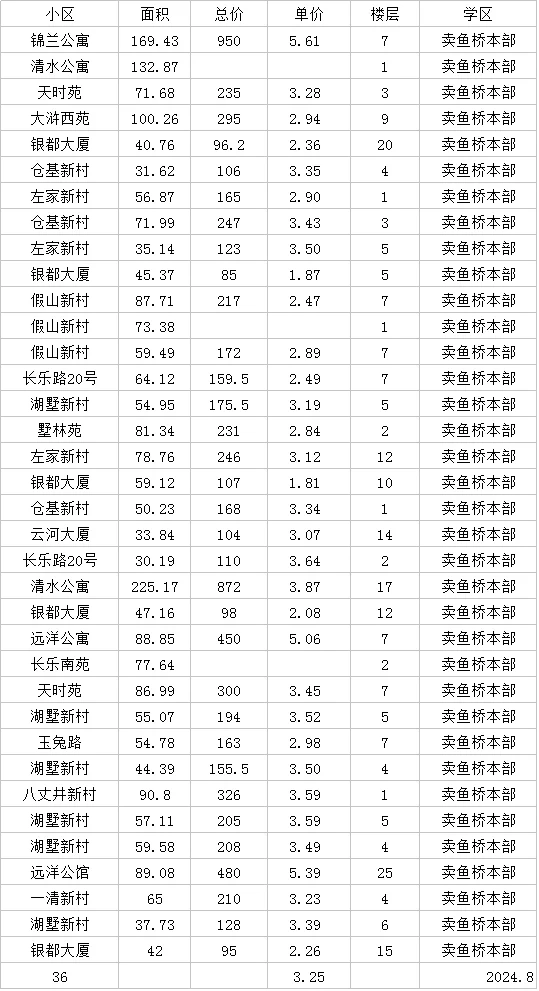 文澜实验卖鱼桥长寿桥安吉路8月市场成交价
