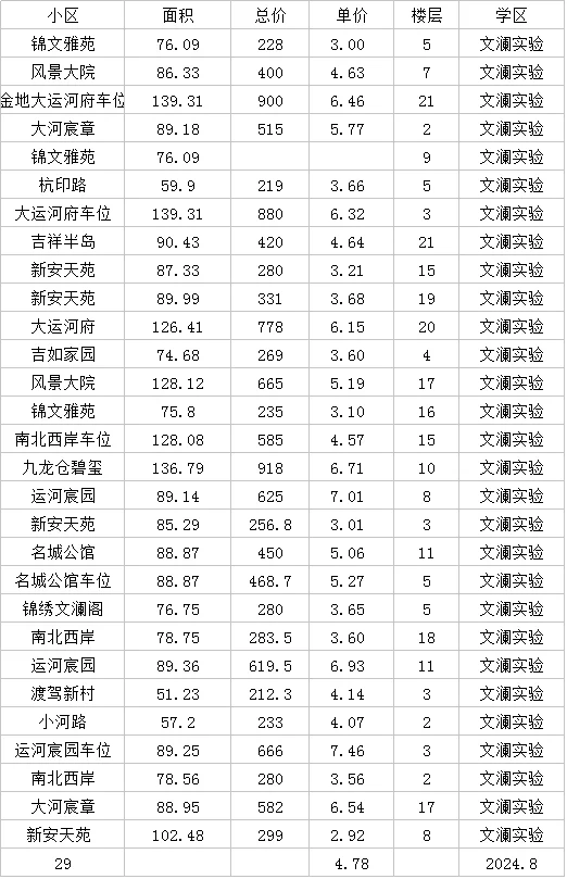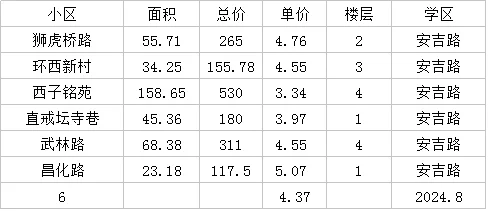 成交数据 文澜实验 文澜中学 拱墅区 学区房 杭州买房 卖鱼桥小学 长寿桥小学 安吉路实验学校