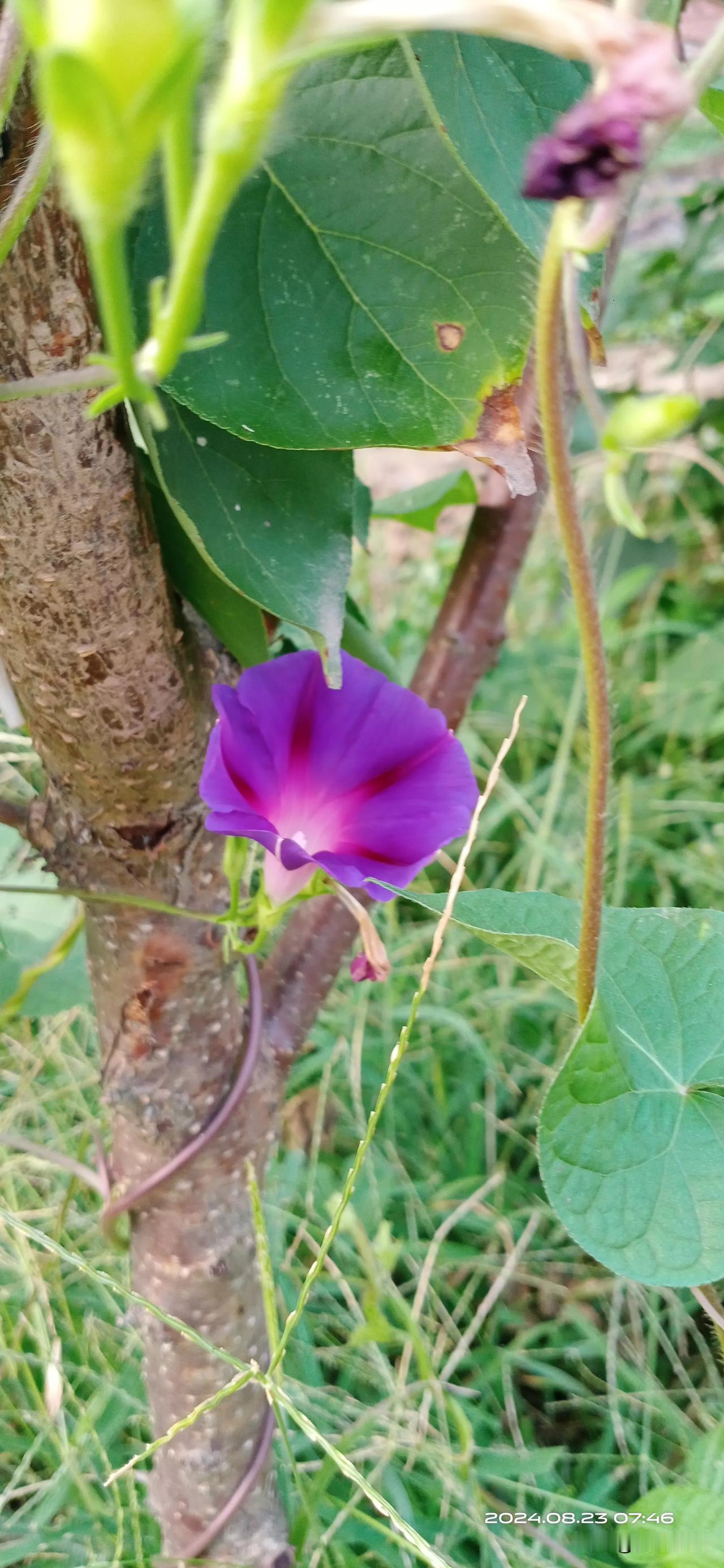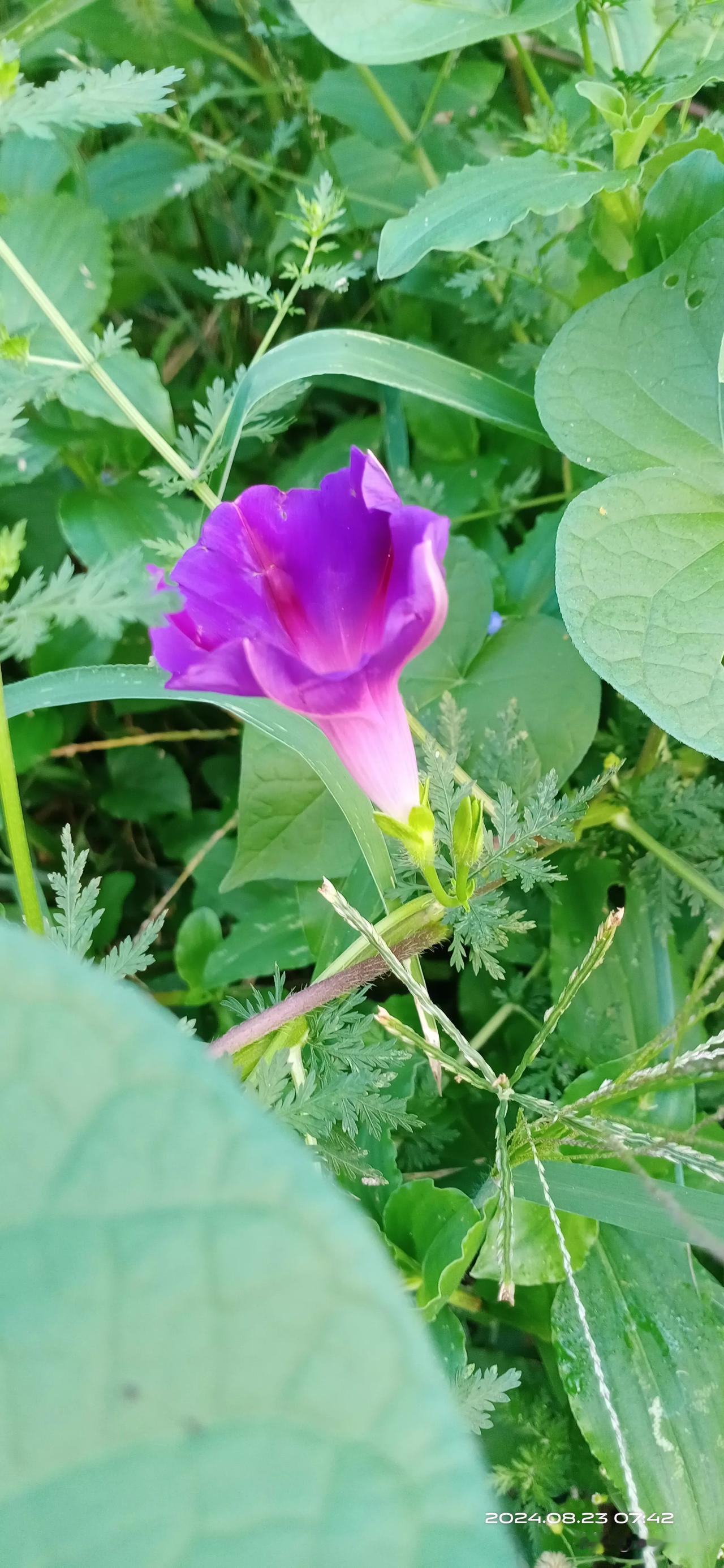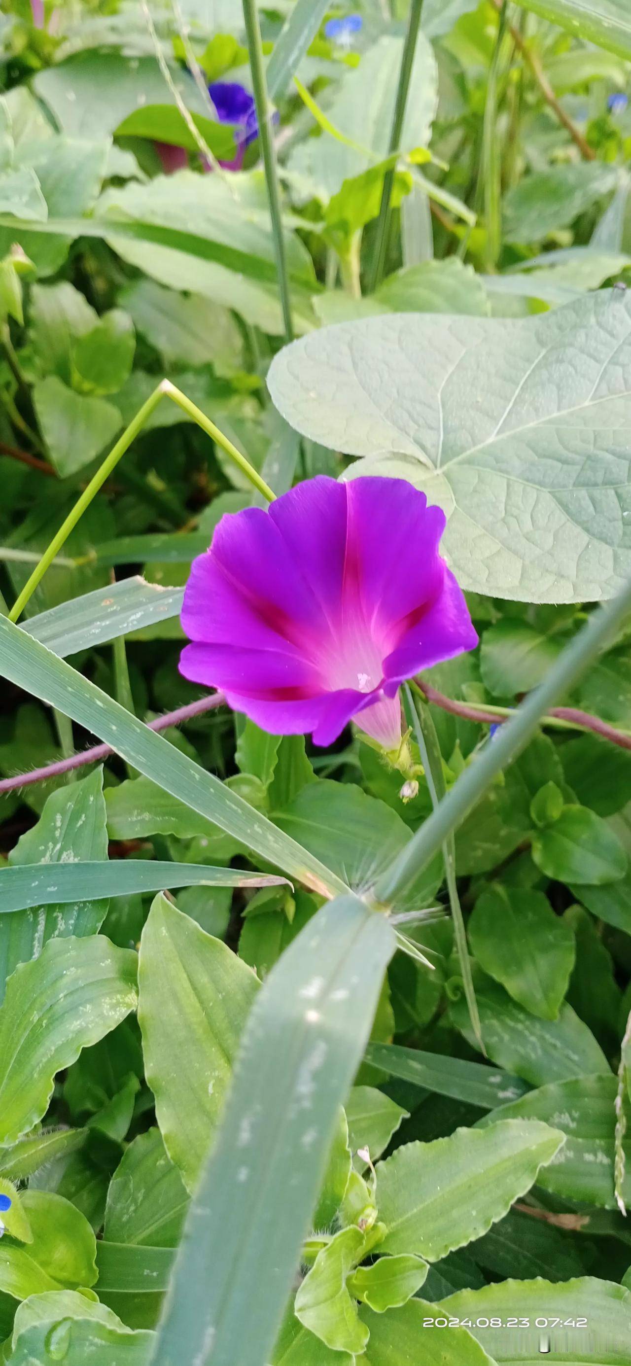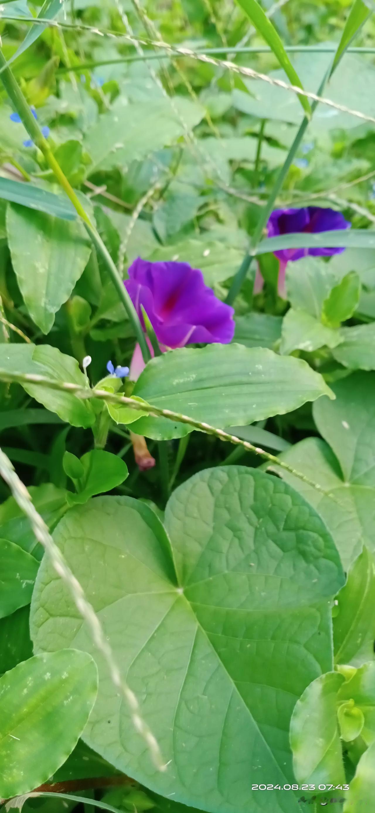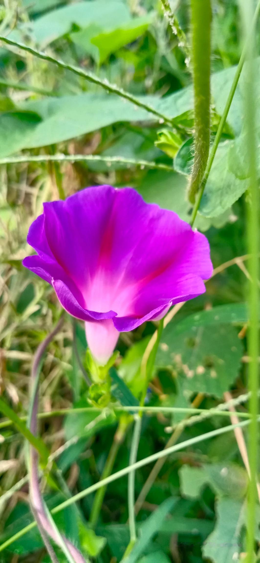 此时,正是喇叭花,盛开的季节。喇叭花的颜色有很多,有白色的、有红色的、有紫色的、