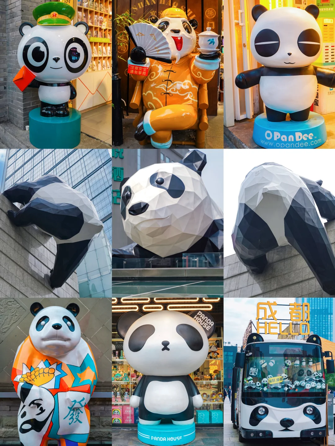 在成都街巷和繁华商业街都会看到各种熊猫装饰,可以搜集各种各样造型的熊猫哦