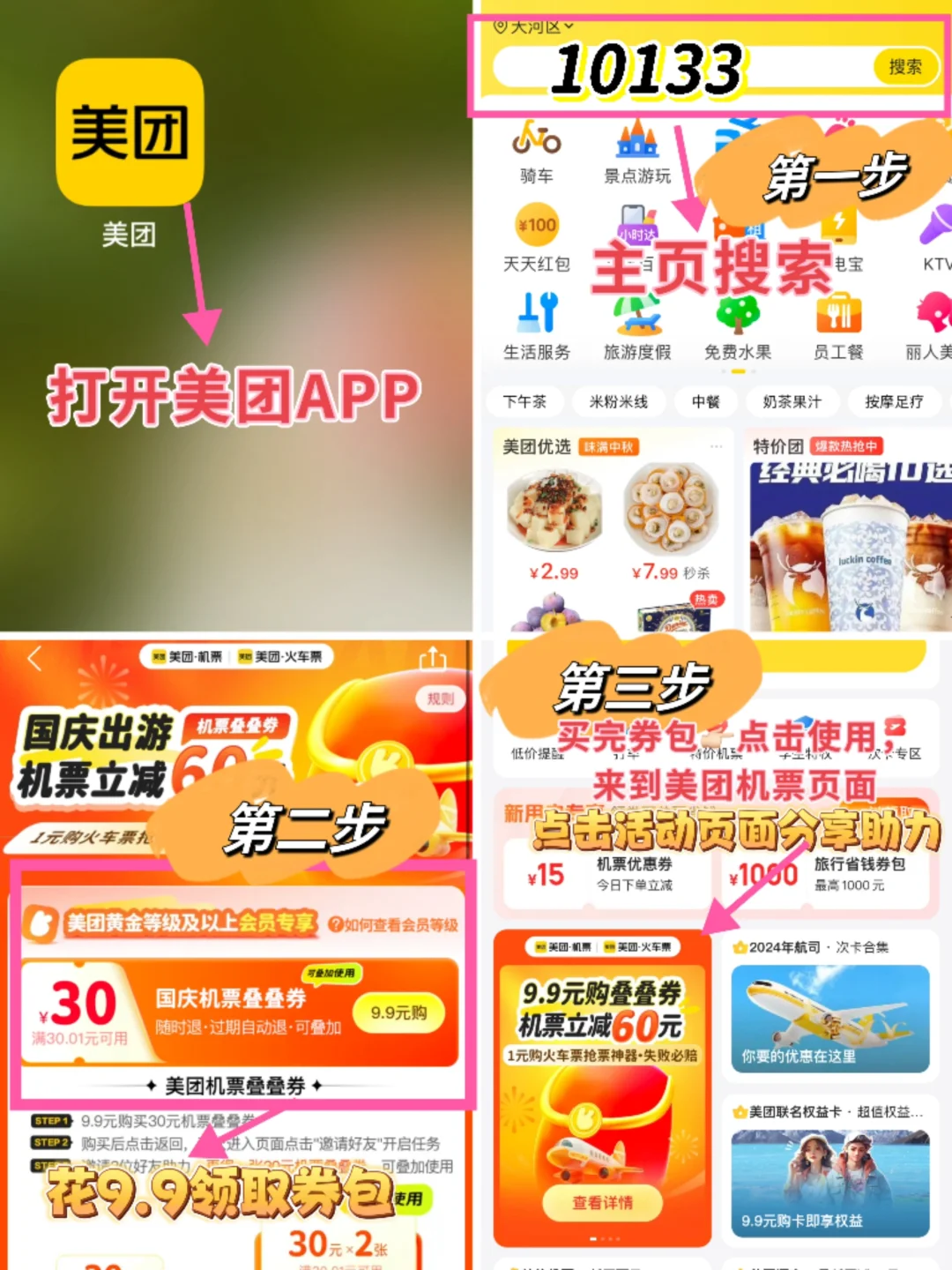 可以上美团订机票👉🏻撸个羊毛,上美团搜索关键词10133