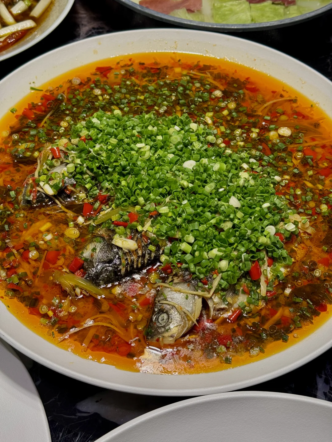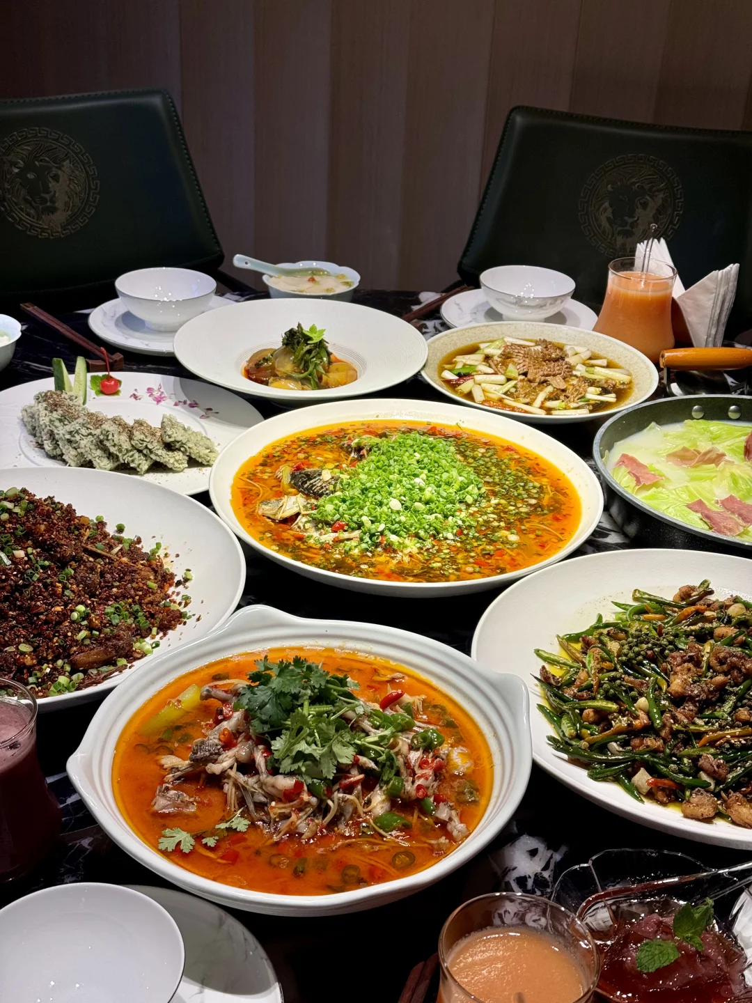 成都还有这么有格调的自贡餐厅🥹🥹完全被惊艳到……好久没吃到这么对胃口的家宴了!环境高级菜又好吃,新中式装潢,包间茶室雅致高级,宴请合适。 葱葱鲫鱼、烧椒溏心、火爆腰花、炝锅兔头鸭脑壳双拼…没有一个不好吃啊啊啊成都人的梦中情席😭
