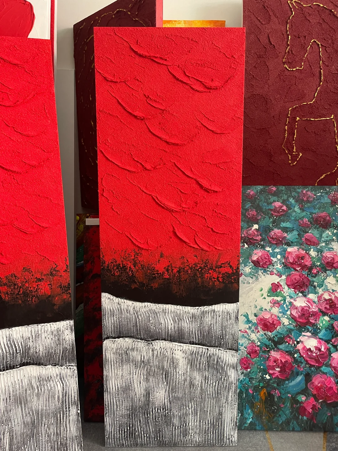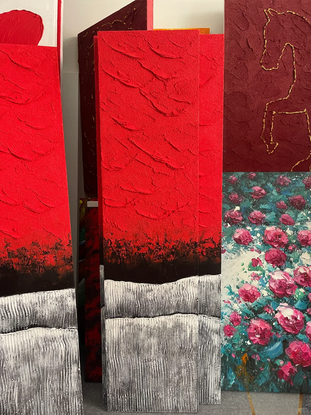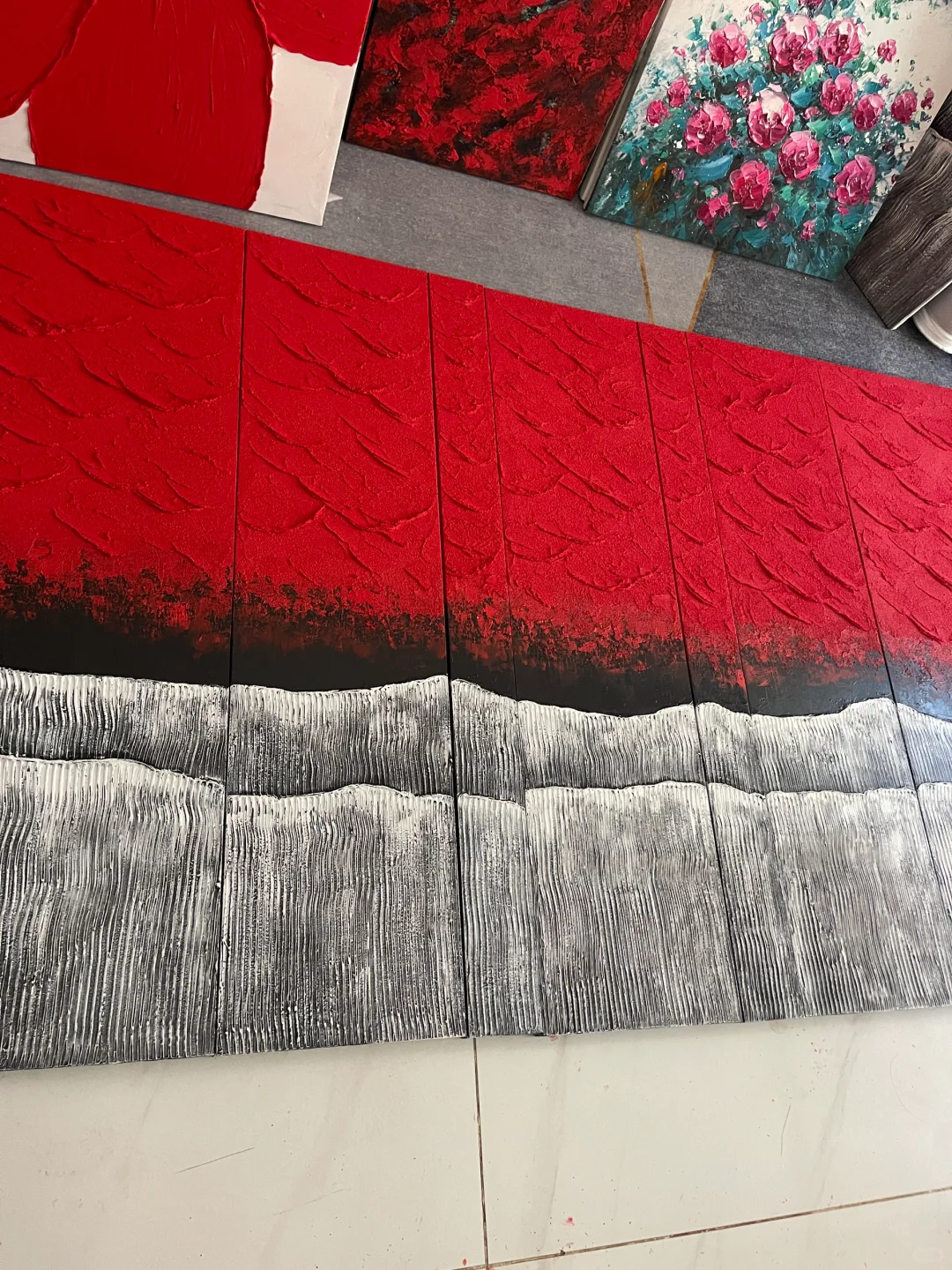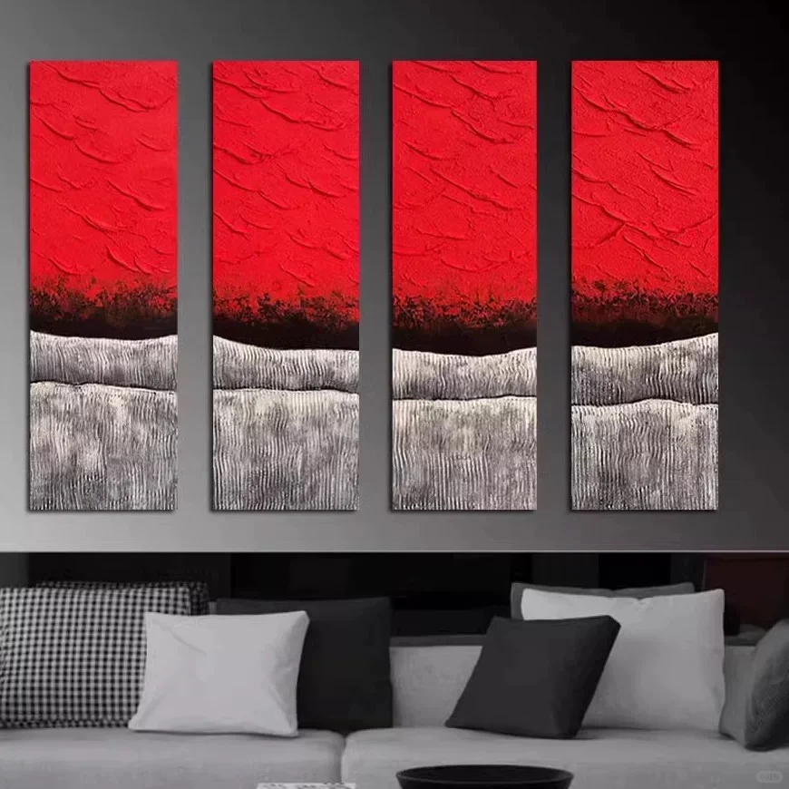 客厅沙发装饰画四联红色挂画高级餐厅壁画