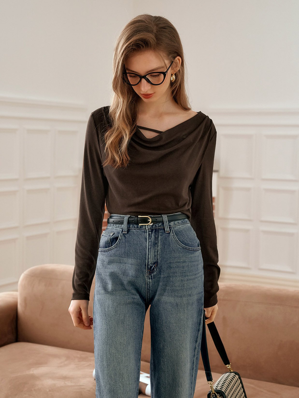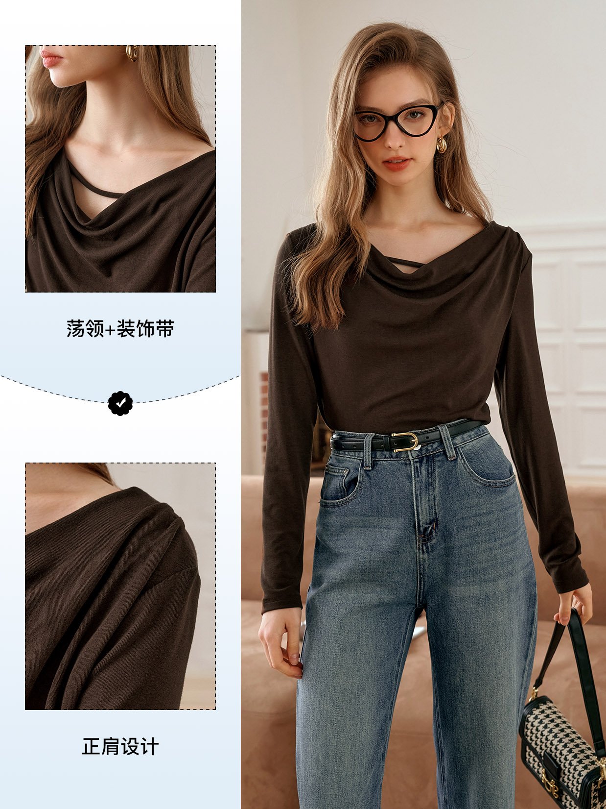篙弹轻柔针织料,穿着舒适无束缚感,上身轻柔悬垂,不过份软塌贴肉,更显自在