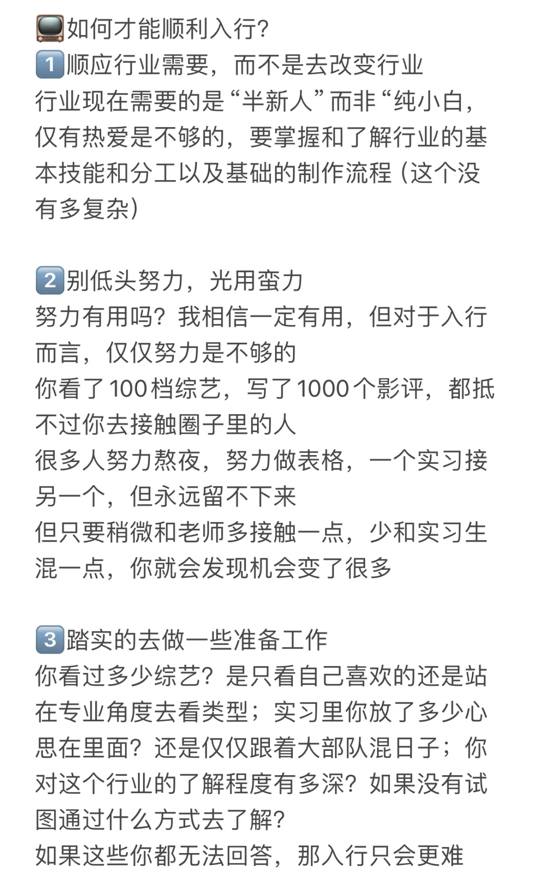 如何成为综艺导演? 为什么入行越来越难? 怎么做才会更好的入行? 作为入行十多年的综艺导演,今天就和大家从下面几个角度来分享一下“成为综艺导演”需要知道的二三事 🌟文字较多,希望可以耐心阅读 1️⃣进入综艺行业的渠道有哪些? 2️⃣影响我入行的原因有哪些? 3️⃣如何才能顺利入行?