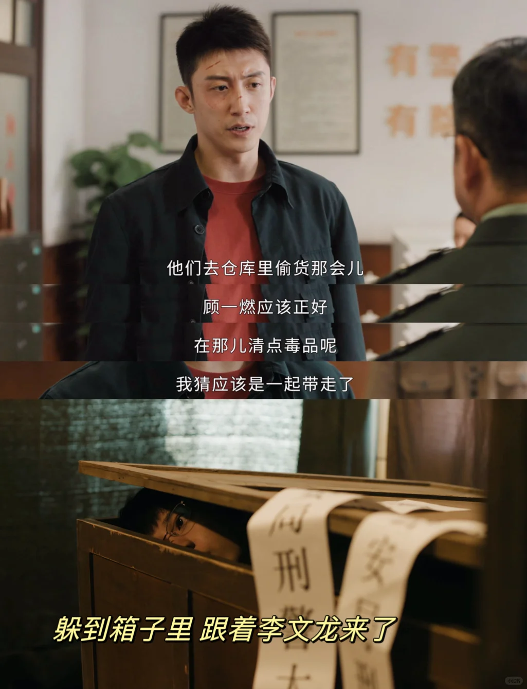 顾老师一个人在仓库清点收缴的du品,但没想到李文龙带着人来抢这批货。情急之下顾一燃躲进了货品箱子里,跟着李文龙上了船。