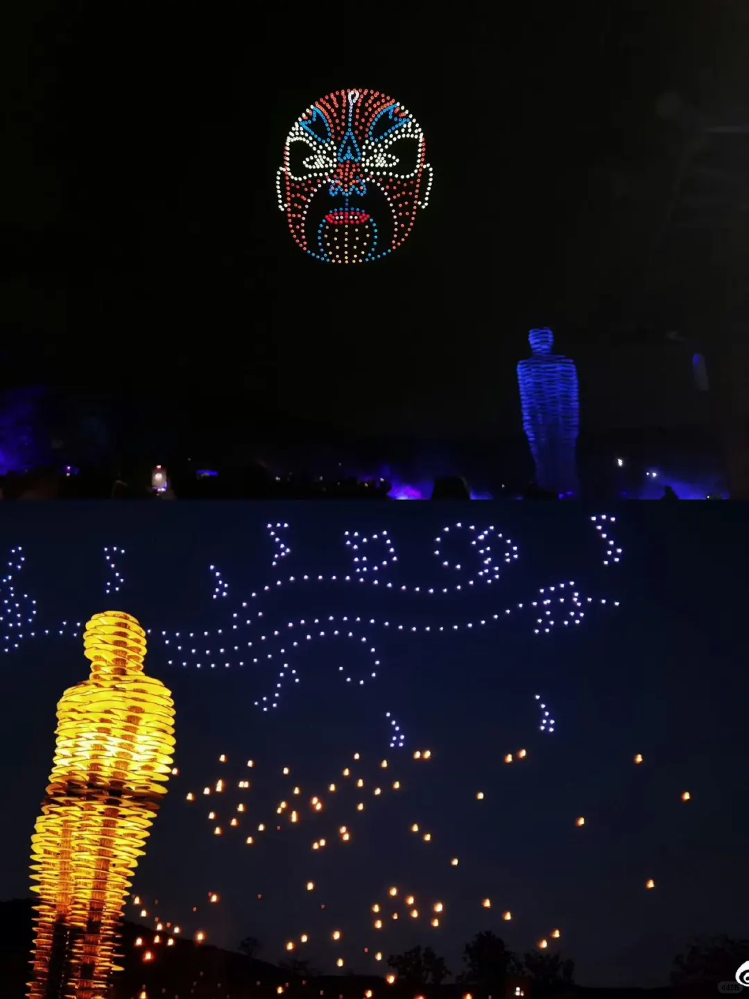 🌙当夜幕降临,拈花湾简直美炸了,19:30 在微笑广场的《拈花一笑》无人机表演,超多无人机在夜空演绎的画面,真的让我心潮澎湃,太难忘啦💕。