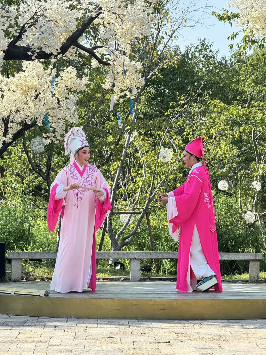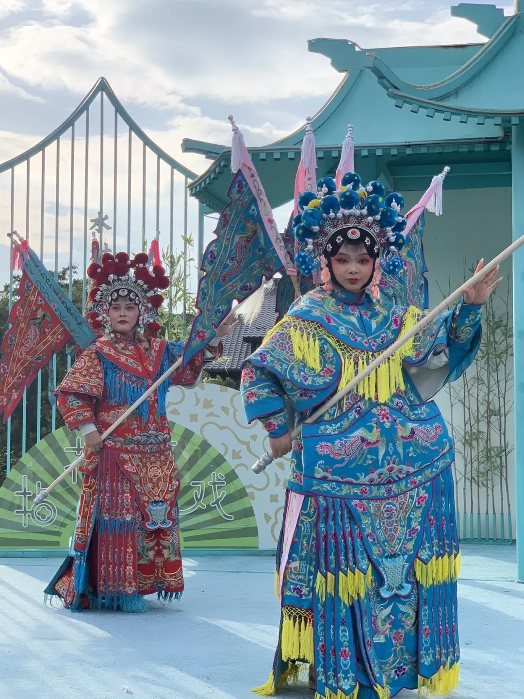 🎭一进景区就被那充满戏曲风情的精美装饰吸引住啦,随便一拍都超级出片👏。期间更是绝绝子,京剧、越剧、锡剧、评剧等八大传统戏种轮番上演,艺术享受拉满🥰。