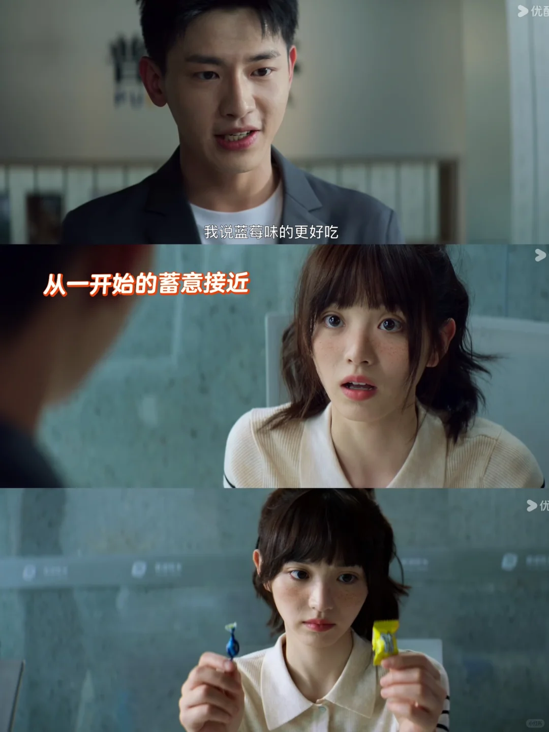 主动接近并搭讪,说蓝莓味的糖好吃!