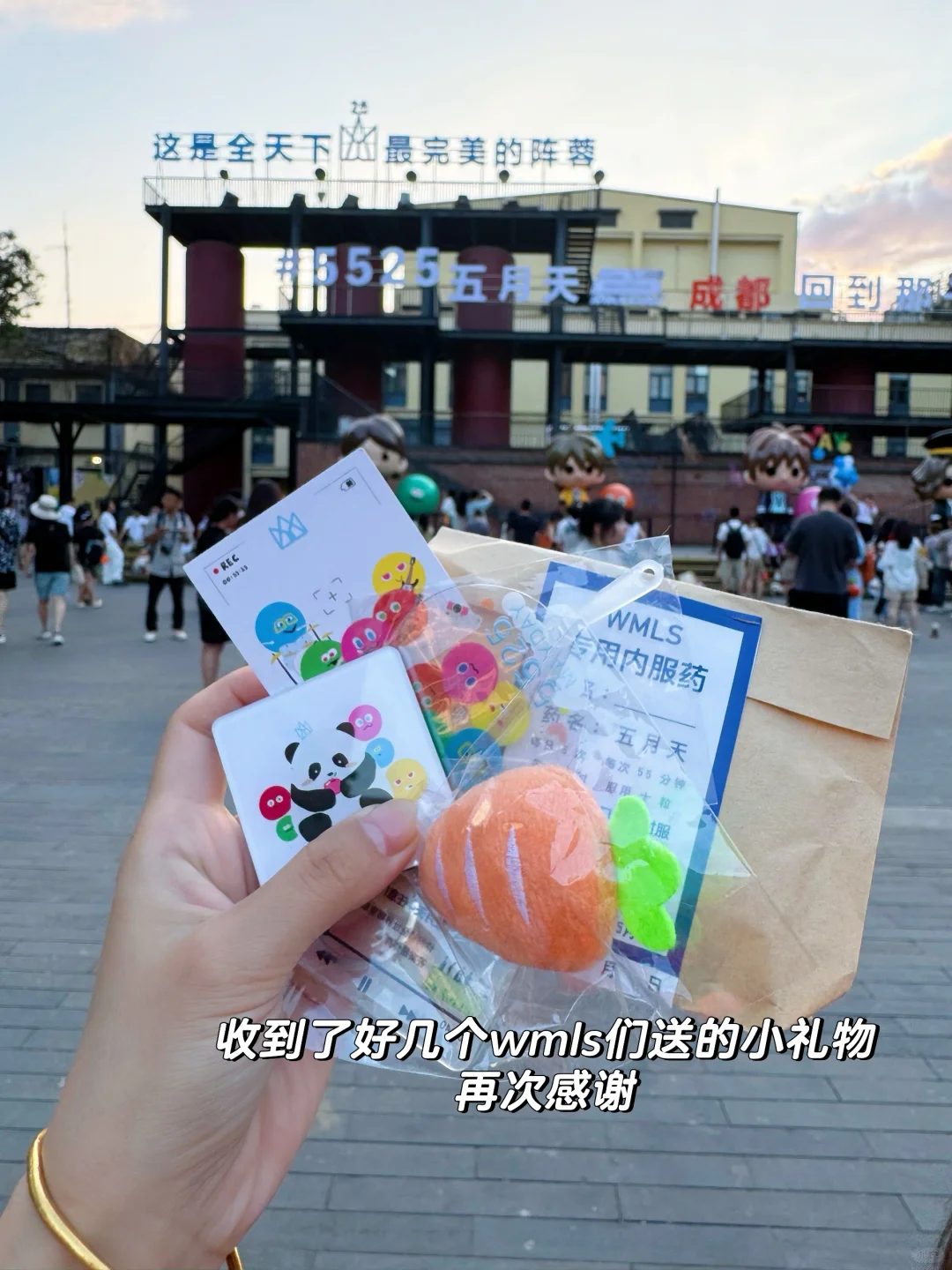 今天的东郊记忆人山人海,wmls占一大半 与玩偶拍照都要排队[笑哭R] 在五位大爷来成都之前大家又嗨唱了起来 参加过好几次五迷线下快闪活动,这次因为人从众而不得不提前结束,五迷们都没有尽兴,久久不愿离去 现场氛围真的好燃~~好热情的一大家人。 wmls们互黑物料都好有意思,谢谢送我们小礼物的每位小姐姐[飞吻R][飞吻R] 咱们27号不见不散