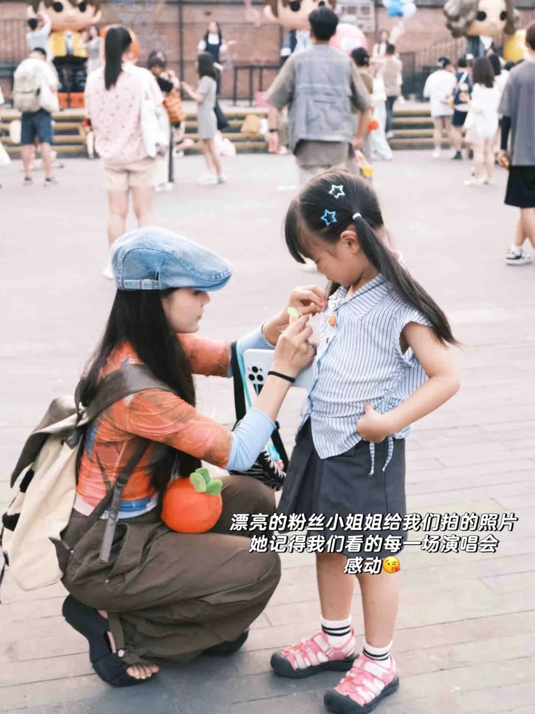 今天看到你们两母女了。。特别是妹妹头上的蓝色星星