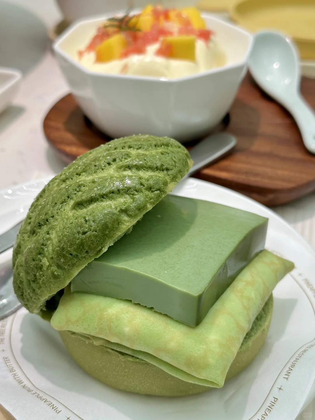 长春‼️终于吃到了‼️抹茶奶冻班戟菠萝包