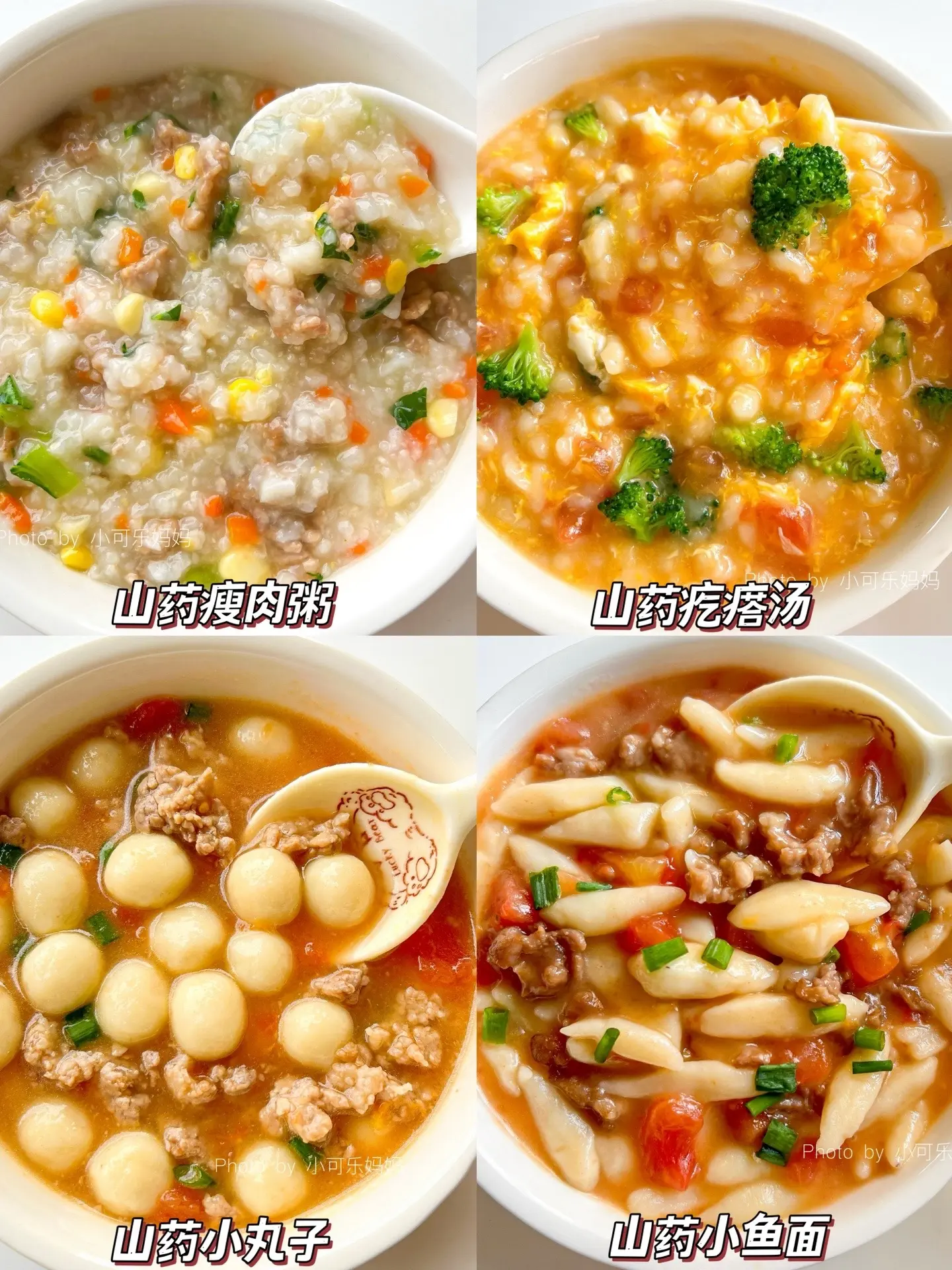 秋冬多吃山药好处多✅试试这样做 营养好吃。秋冬多吃山药好处多,整理了四款我女儿经常喝的,简单又清淡,营养好消化,这样做超级软糯,酸甜开胃又好喝,老少皆宜,健脾养胃,有时候人不舒服的时候来一碗,喝完胃都超级舒服~ ✅山药瘦肉粥 ✅山药疙瘩汤 ✅山药小丸子 ✅山药小鱼面 🔎详细做法请看图片 🌈食材大小可根据宝宝咀嚼能力调整