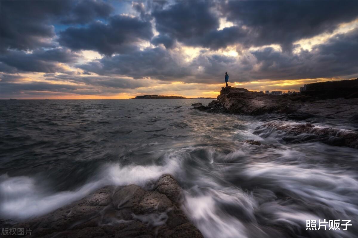 使用慢门拍摄海景,最好是在日落前后,使用广角镜头,设定中小光圈,尽量靠近海景中带有海苔等植物的岩石,使这部分景物得以夸大,这样画面看起来充满生机和活力。