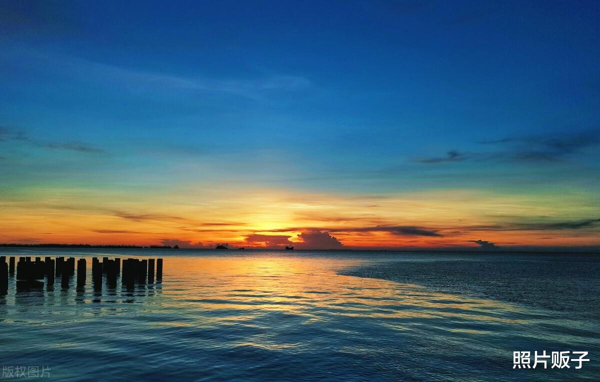 大海是蓝色的,夕阳是黄色的,同一画面中,我们可以运用冷暖色调的对比,让画面达到一定程度上的平衡,这样不会让观者产生单调、沉闷的视觉感受。