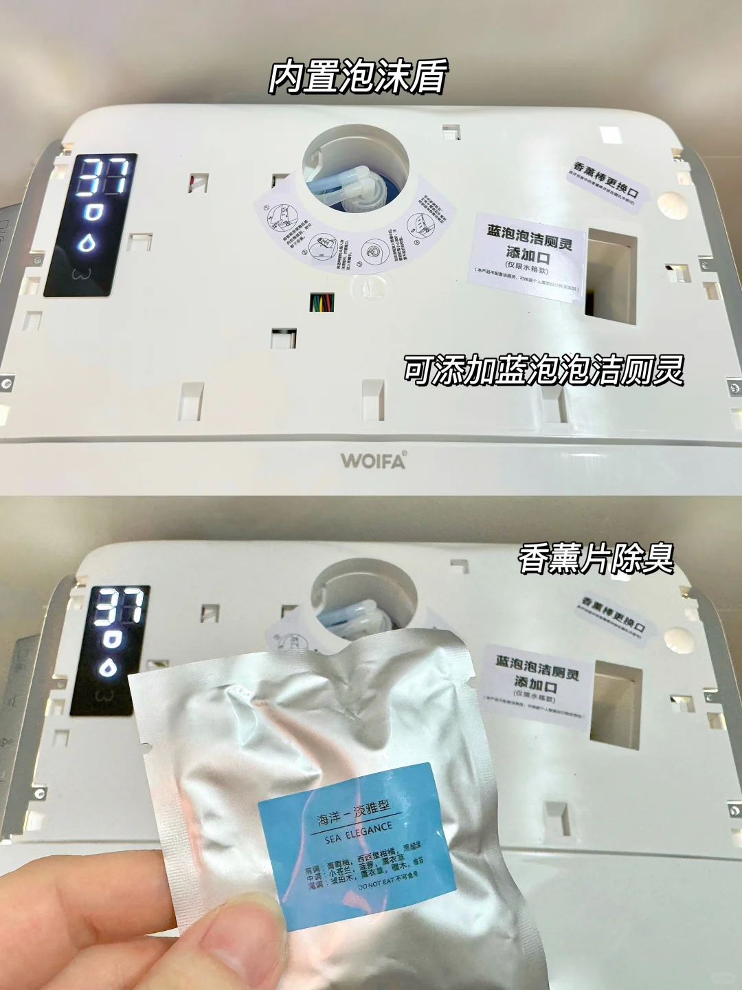 7️⃣内置香薰和蓝泡洁厕灵