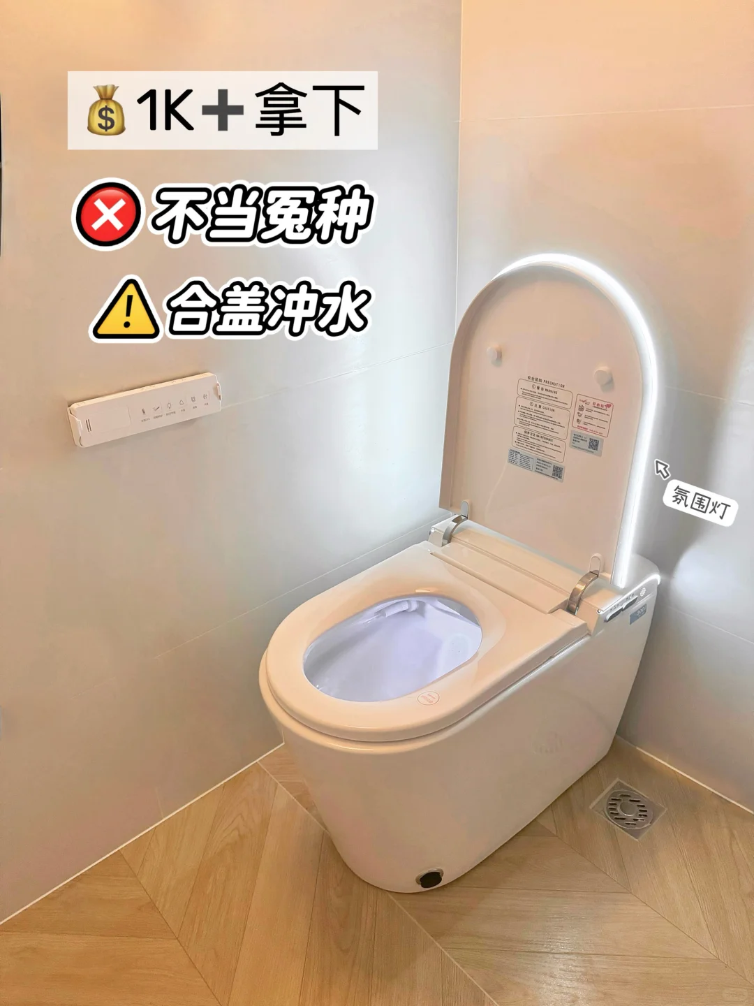 一定要选好有感应自动翻盖和脚触翻盖两种翻盖模式的。这样家里男士使用时可以脚触翻圈。(这个真的超实用,懂的都懂😤)