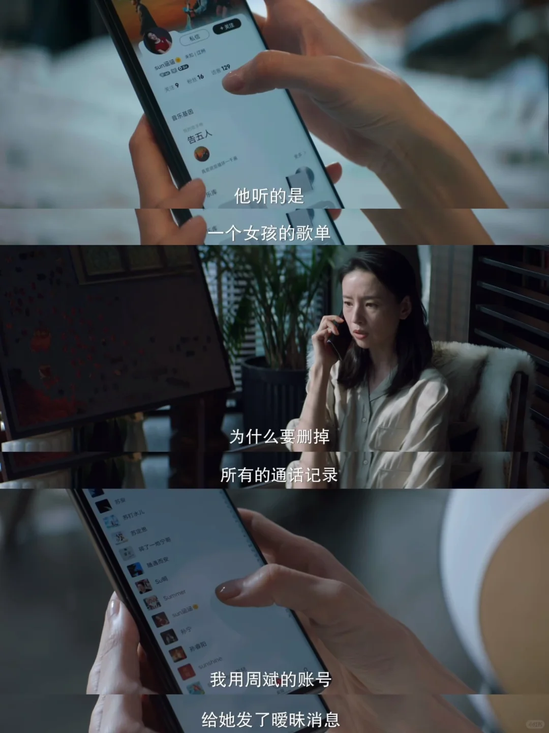 她的第六感真的很准,凭一首歌,一个空白的通话记录以及聊天试探,瞬间发现周斌出G的真相。