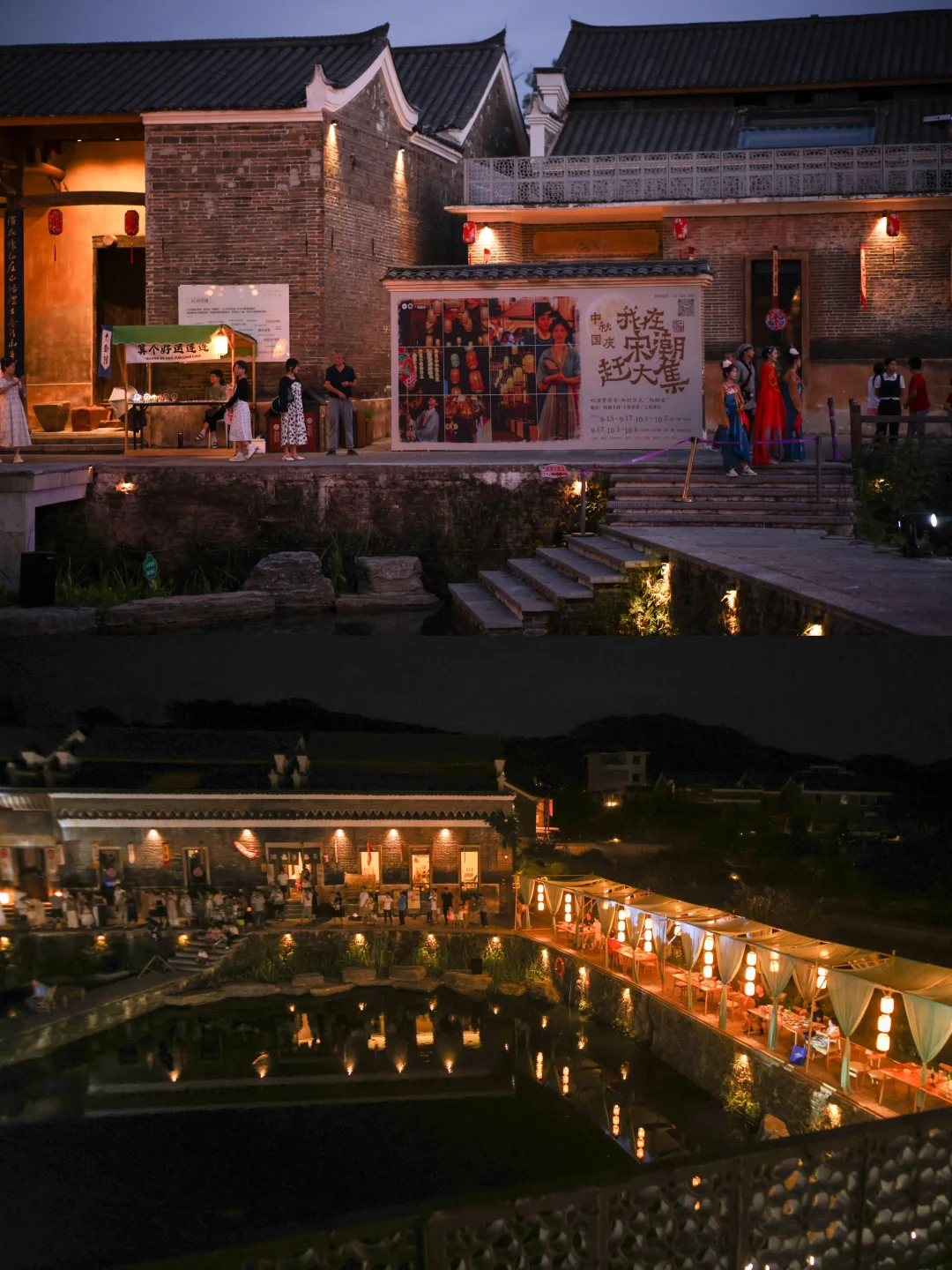 钓源古村的美食搬到户外,一边吃一边看表演,还有古村的秀美风光。尤其到了夜晚,熙熙攘攘的人群,仿佛重现宋朝的烟火与繁荣。