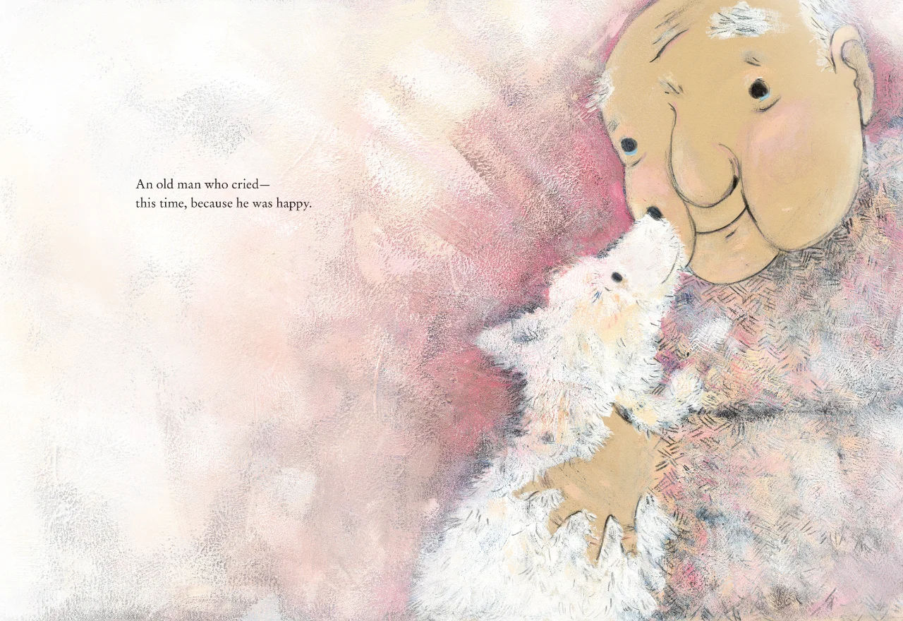 但每日他们都注意到带着狗狗的老先生,那是一只很棒的狗狗,牠会叼着一串气球给老先生,