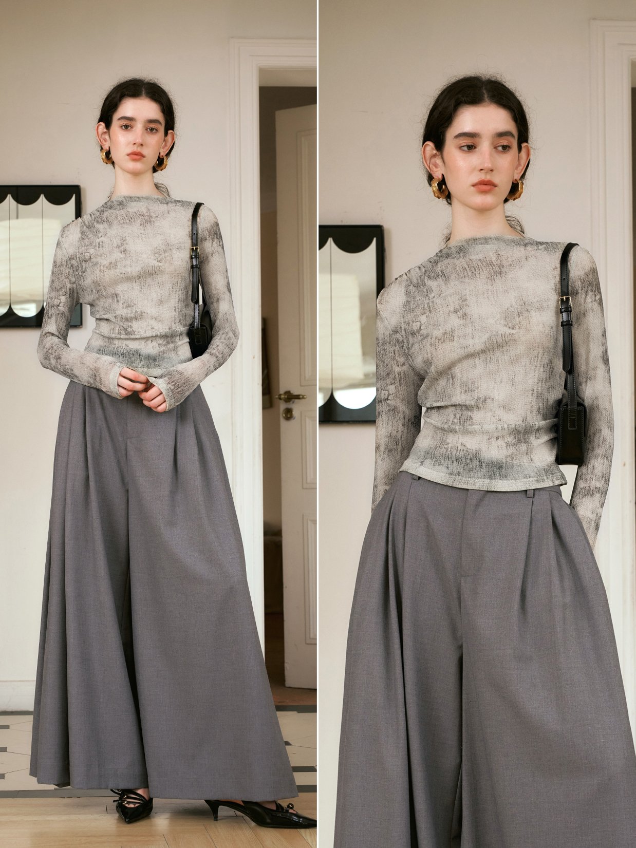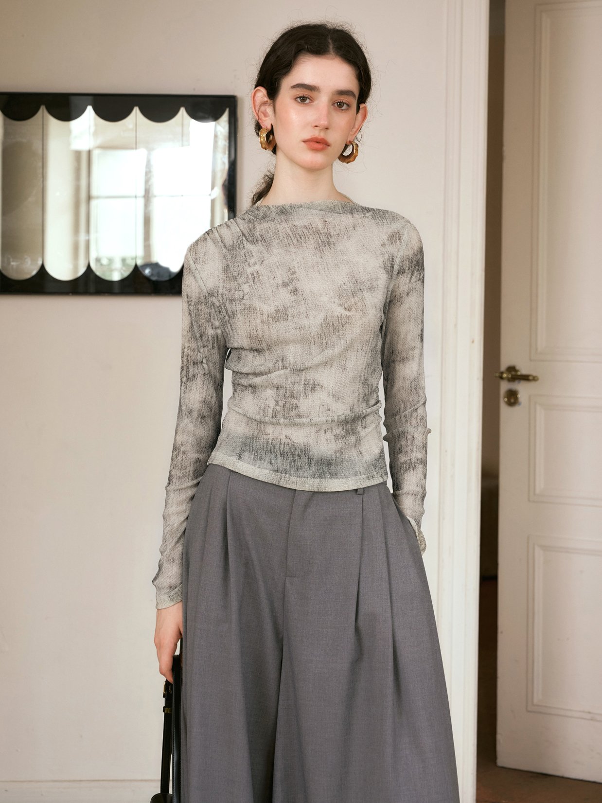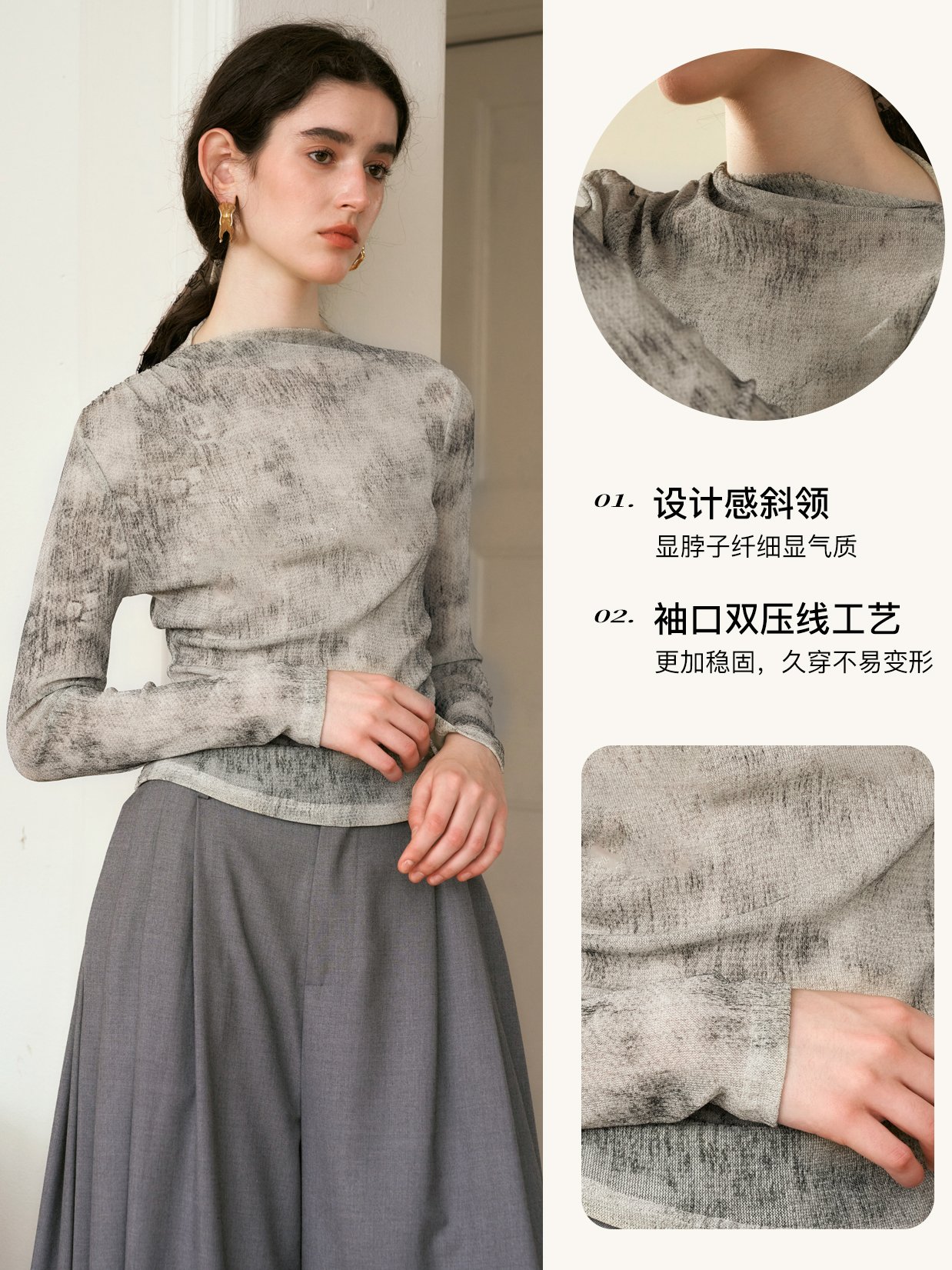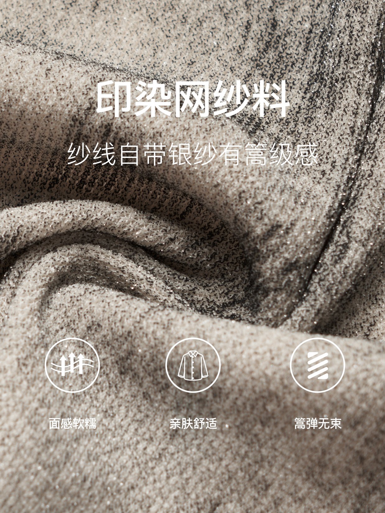 JING选印染网纱料,面感软糯,亲肤舒适不扎人;篙弹无负担,水墨风印染工艺,低调篙级灵动;设计感斜领,肩部一侧收褶,使得肩线更挺拔精至;腰部单侧收褶遮肚显瘦,下摆圆弧设计拉长比例