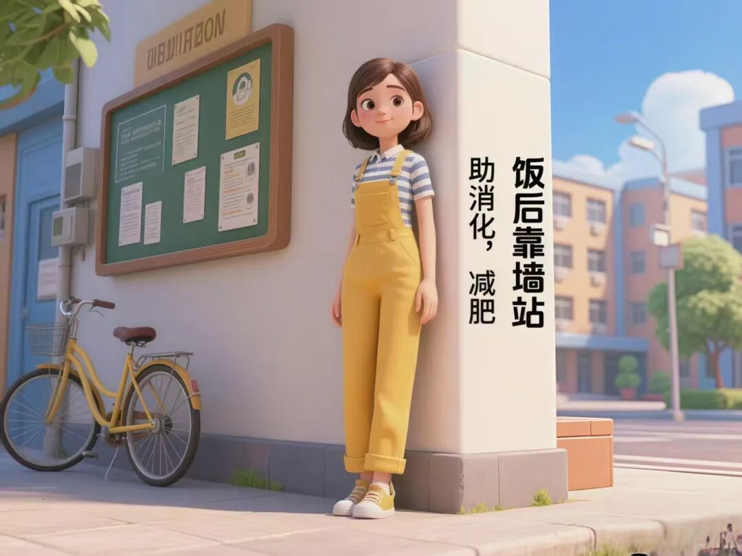 饭后也可以靠墙站一会儿,有助于消化,还能减肥。刚开始可以站5分钟,慢慢延长至10~15分钟。站立时注意穿平底鞋。
