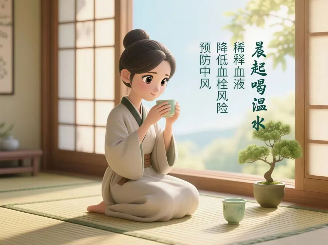 专家介绍,晨起小口慢饮200~400毫升温水可稀释血液,降低血栓风险,从而预防中风。