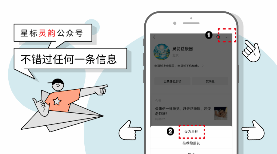 致亲爱的灵韵益康园家人们,很多人反馈看不到文章推送,因为公众号推送规则调整了。为了避免错过每一篇文章,请一定要“星标”灵韵益康园公众号,才能第一时间看到文章推送哦!看图指示,不要错过!