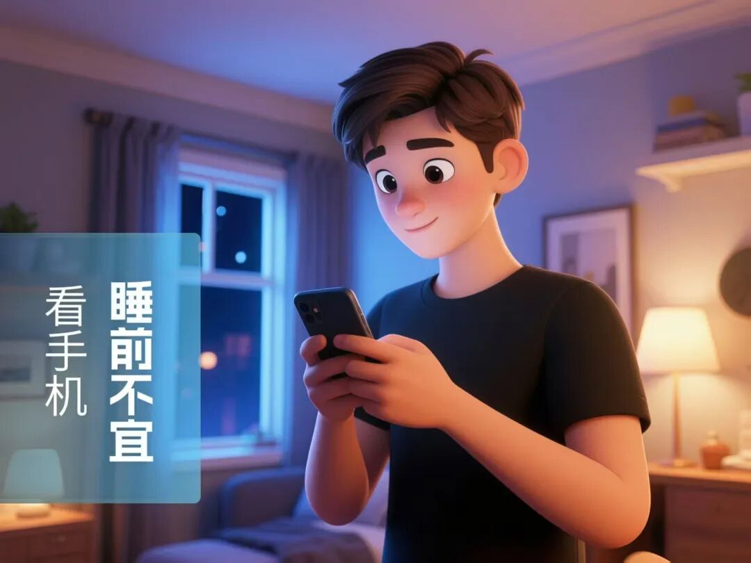 睡前看1个多小时手机,手机发出的蓝光会使褪黑激素生成量减少约22%,直接的影响是让人始终处于浅睡眠状态。