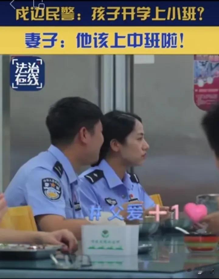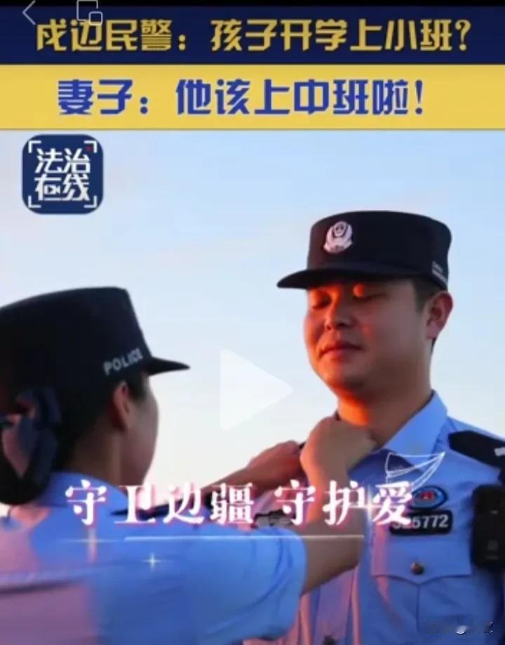 #警察夫妻带娃戍守边疆#驻守在峙浪边境派出所的何强与农美玲,不仅是同事也是一对夫妻。一天午餐时两人边吃饭边聊起儿子的新学期,当爸爸的居然忘了儿子该上几年级:孩子开学上小班?妻子说:他该上中班啦。在小镇在基层,正是有许多这样的好民警为我们执守祖国人民的安宁。[祈祷]