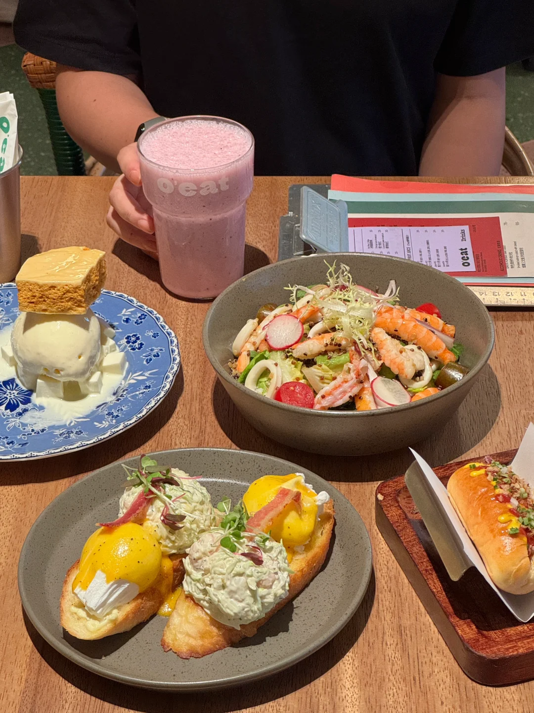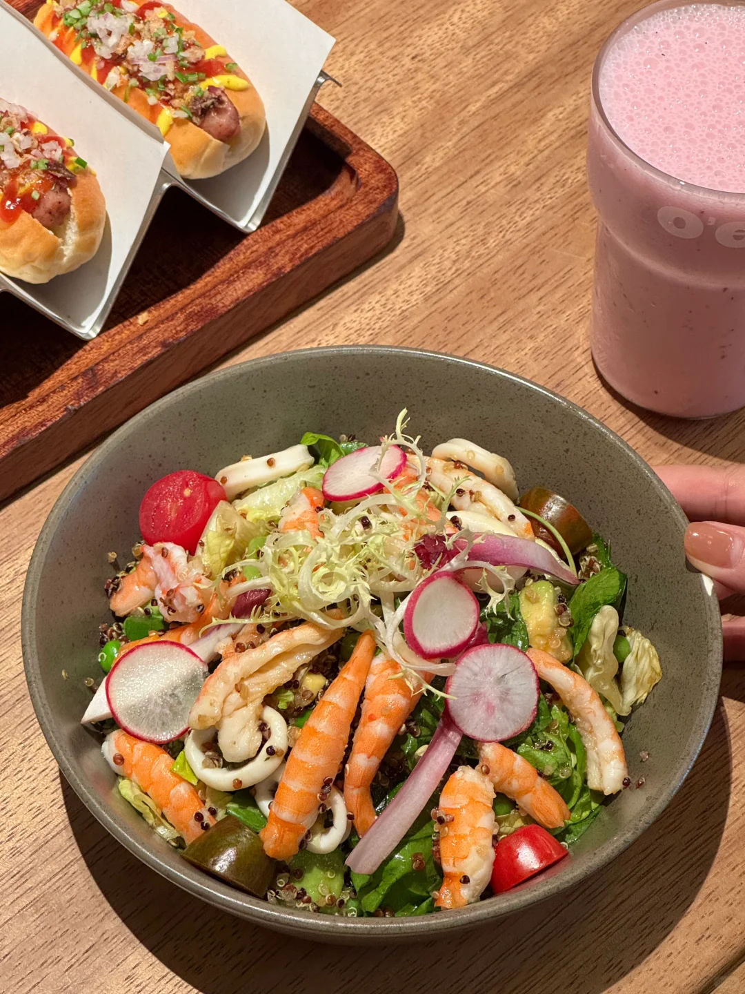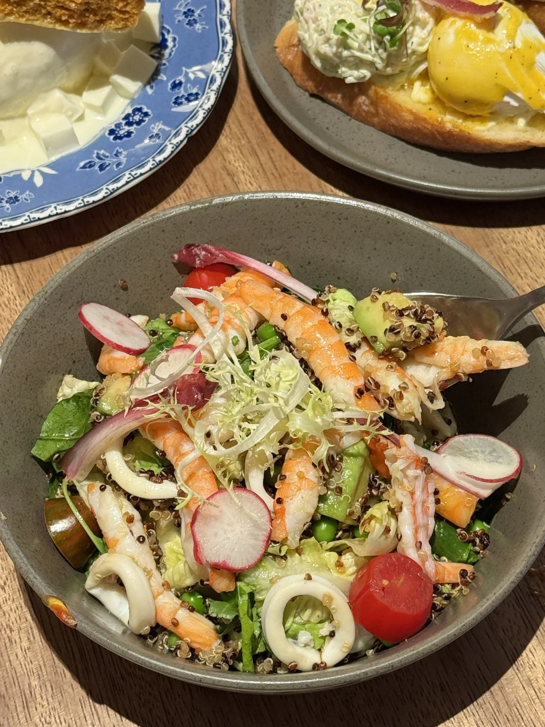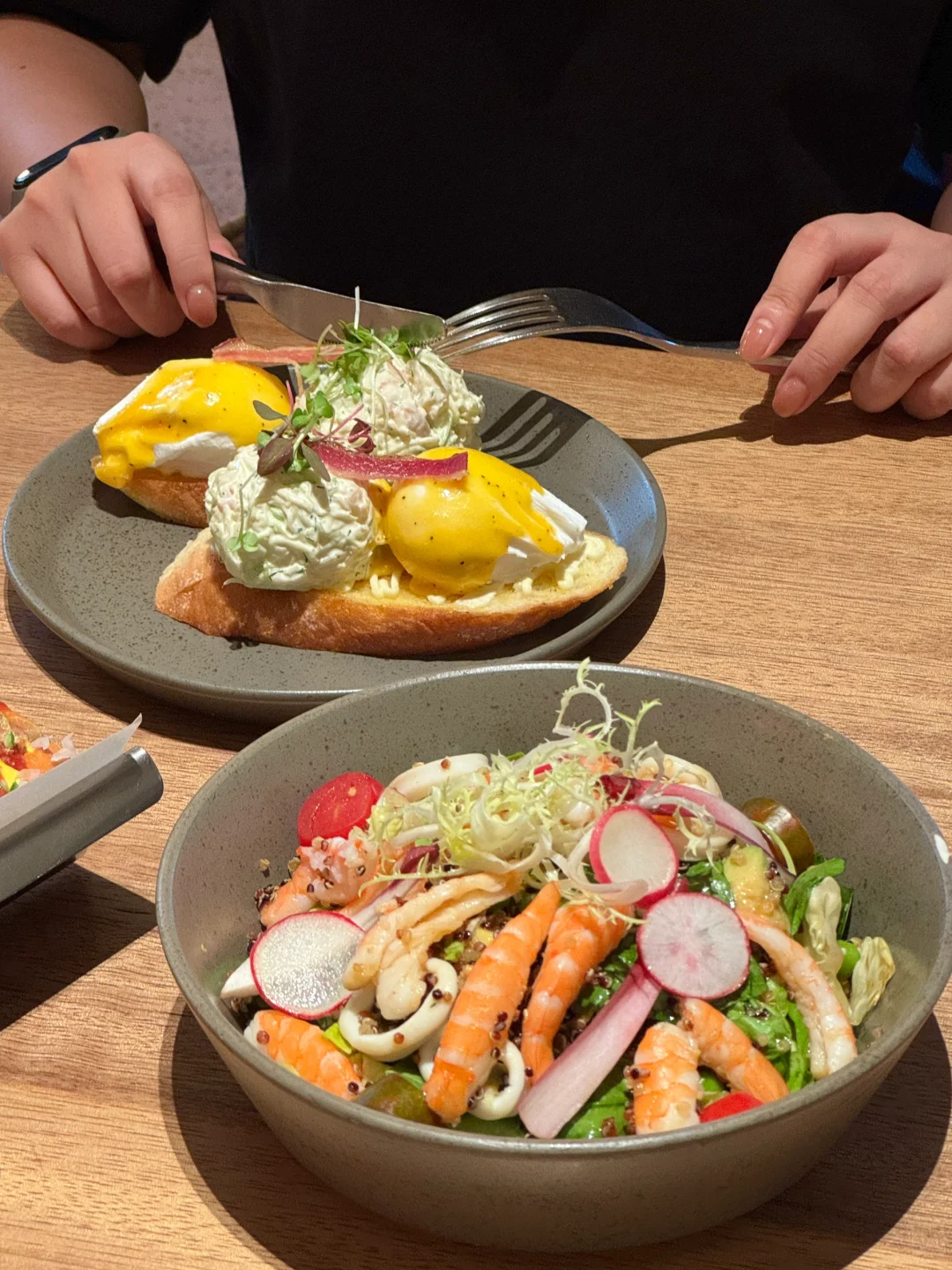 杭州的漂亮饭尊嘟好多~这家菜品和环境都好棒! 丹蜂巢冰激凌配牛奶冻 麦1号虾仁色拉配水波蛋 一口咬下去流心的水波蛋🥚搭配虾仁沙拉🥗不愧是brunch天花板! 还有这个蜂巢冰激凌我也好爱❤️!和牛奶冻一起吃奶fufu的入口即化 ✔️丹麦小热狗🌭、莓莓鲜果酸奶、海鲜沙拉🥗…都好吃不踩雷!