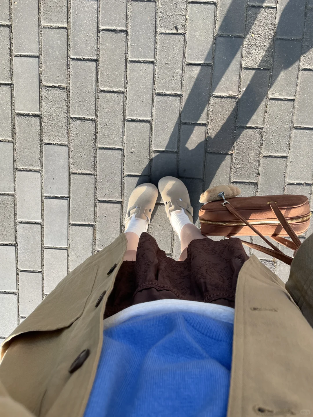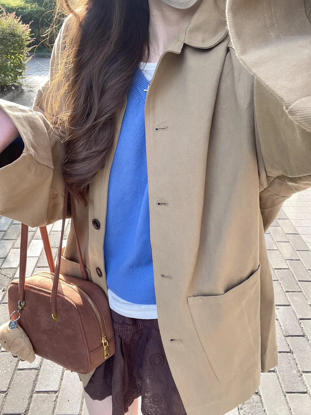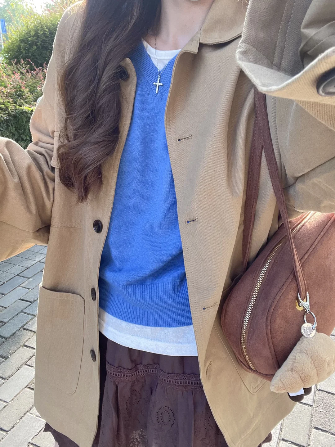 卡其色夹克➕克莱因蓝毛衣 韩系又复古~!