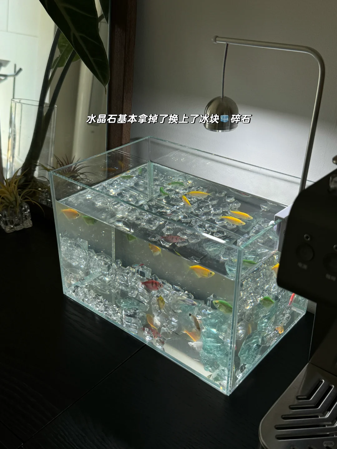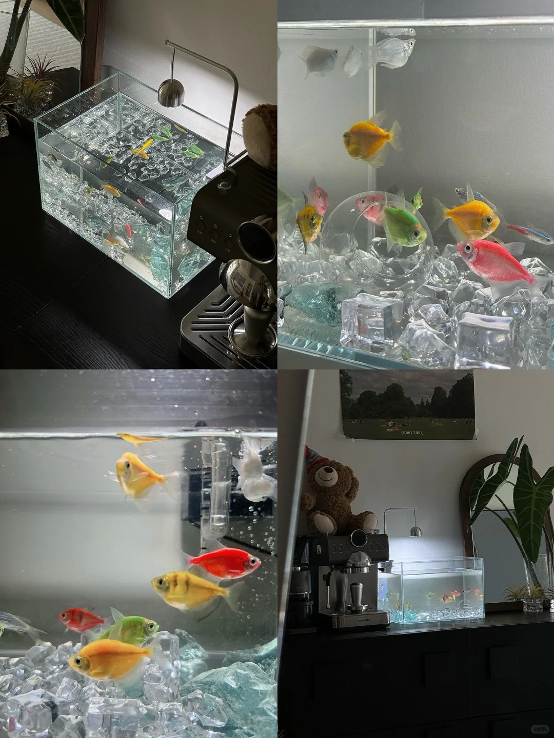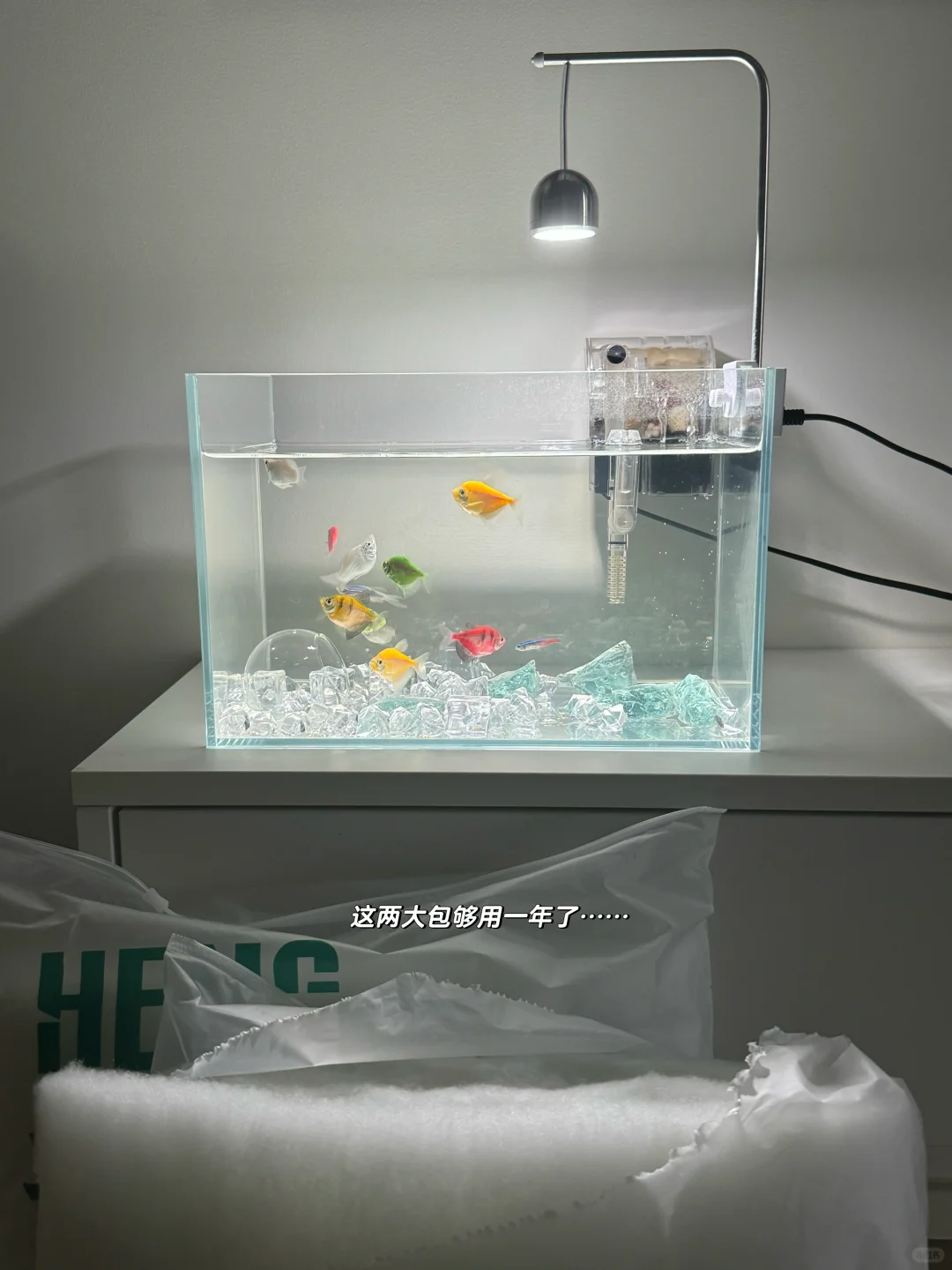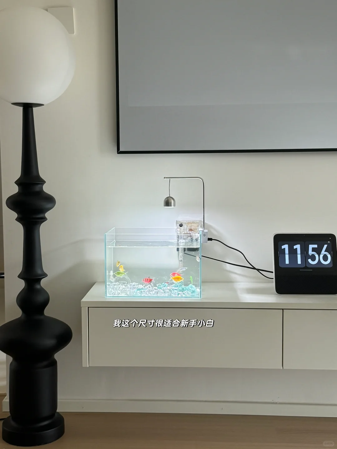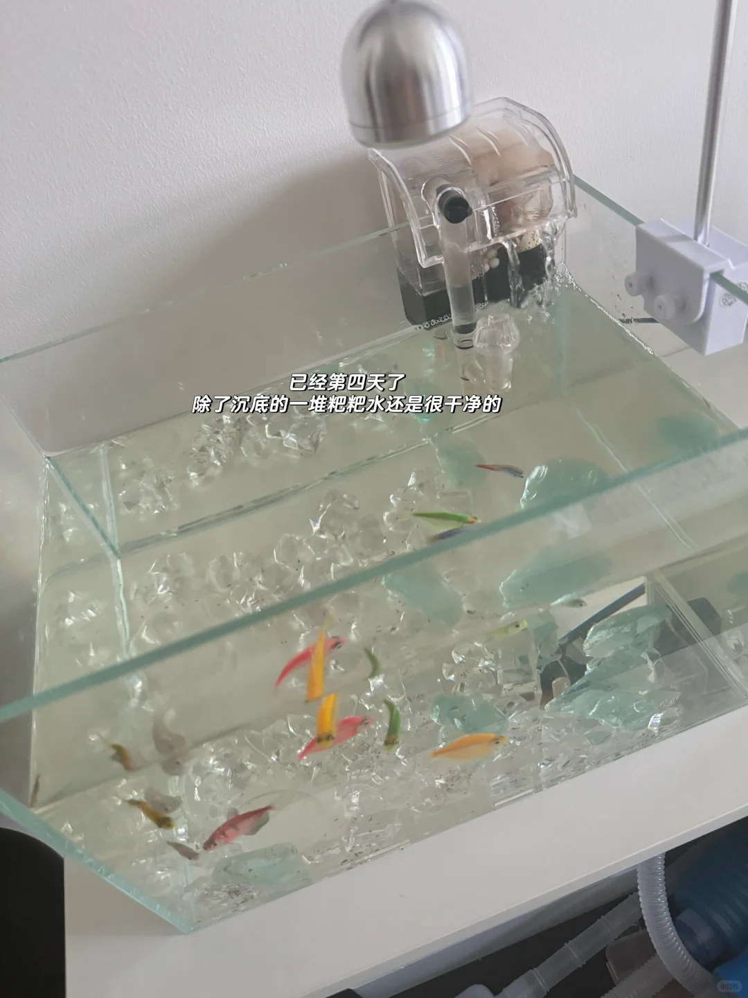很高兴姐妹们喜欢我家的新角落~ 很多人问我🔗有一个视频专门有说哈 一个月后我总结了下有哪些不必要的花销❌ 看需🐶入 不要刚开始一股脑买很多👀 1.如果跟我一样小尺寸的投食器不要 它们吃的挺快 2.这个过滤器效果不是很好 大概第二天水就黄了,可以加上羊绒棉比洗脸巾要好‼️ 3.温度计可以不用(冬天直接上加温棒) 4.水晶石怕伤到小鱼,可以换成冰块碎石🧊 5.换水 之前过器不好一天水就脏了…… 6.现在大概一个星期换一次可以的 日常用吸便神器 7.喂食 它超级能吃能拉🫠随意你们要做好心理准备 我一般早晚两次偶尔中午还加餐 8.虽然有一点麻烦但是很多时候还是很治愈的🥰