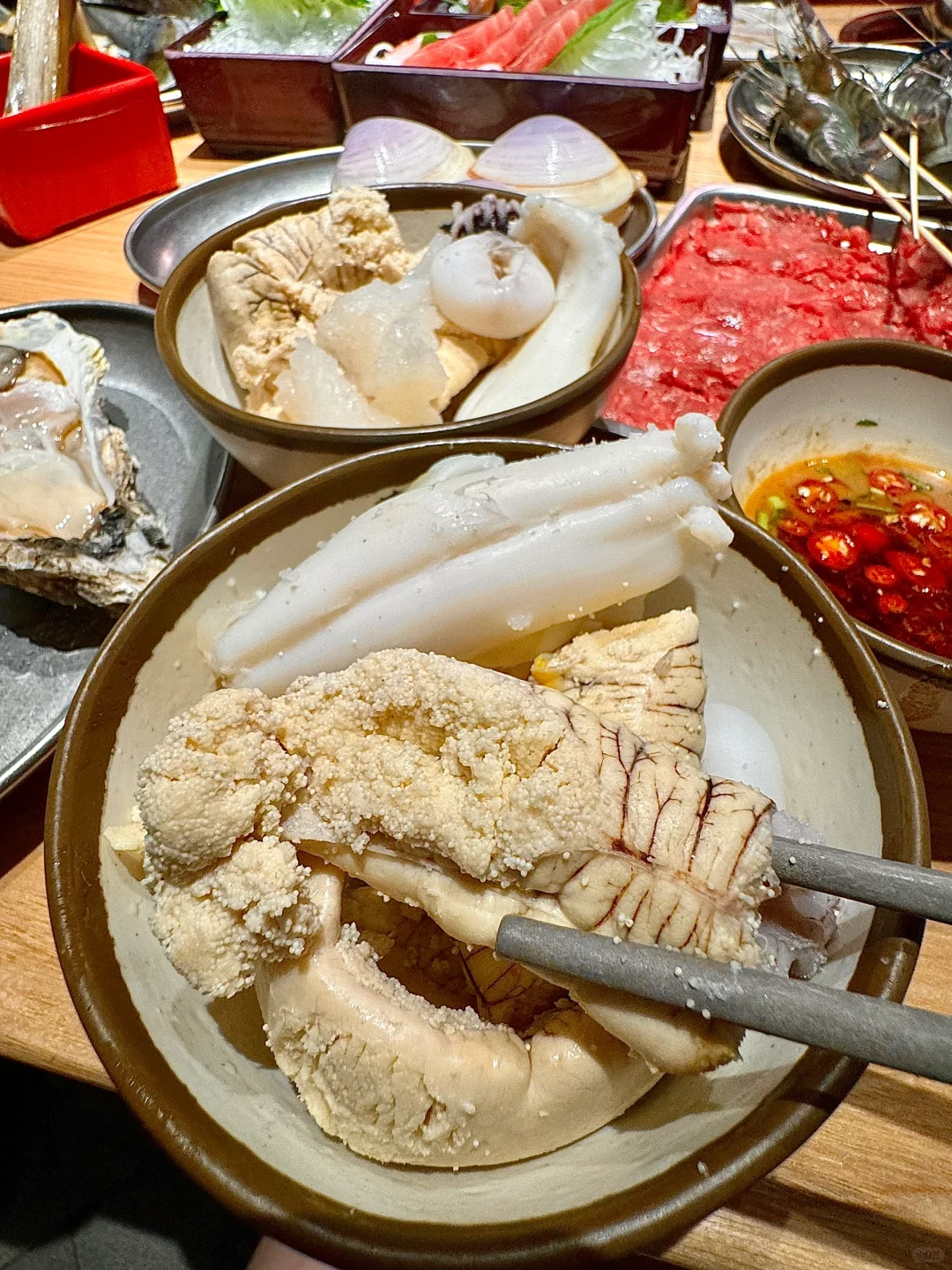 福州真的很适合爱吃海鲜的姐妹!!! 真的被这个海鲜自选火锅店狠狠震惊....好新鲜….吃了好多叫不出名字的海鲜......五指毛桃锅涮海鲜真的好绝啊...... 海鲜都是从马尾运上来的,保证鲜活