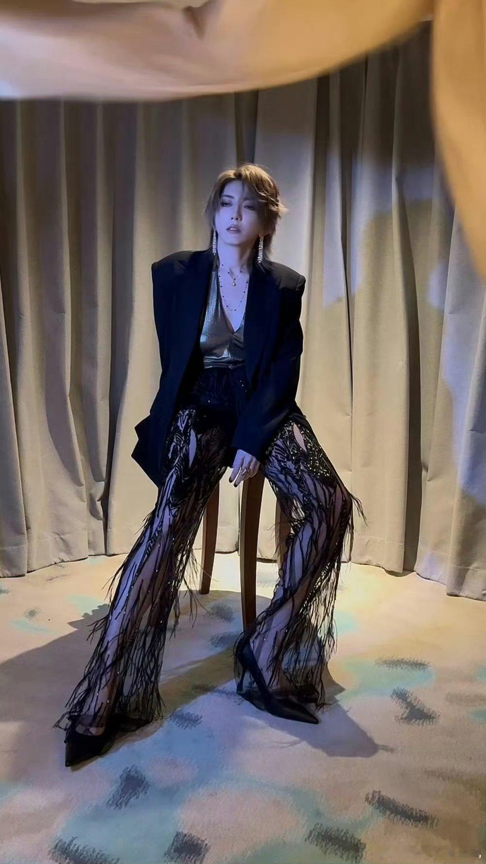 #刘忻的霸总气质藏不住了# 黑西装鸵鸟毛裤,独特时尚。强大气场,尽显霸总气质,爱了!!