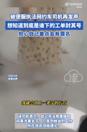 【被便服执法网约车司机再发声】安徽合肥。被便服执法网约车司机再发声,称本来隐藏了此前的视频,现在又给放出来了。该司机表示自己并没有尾随和闹事涉事女子,只是到她当时工作所在地去找她理论。
